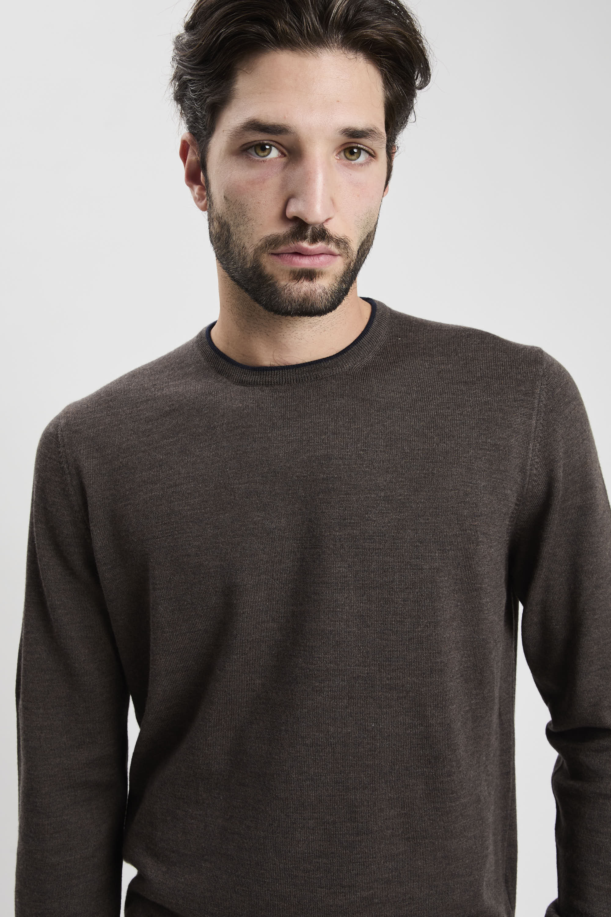 - Rundhalspullover aus glattem Wollstrick