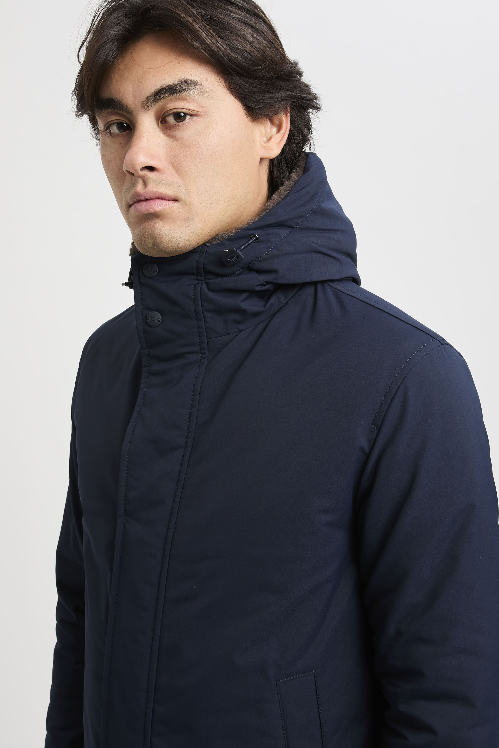 - Herno-Logo aus Metall auf der Rückseite