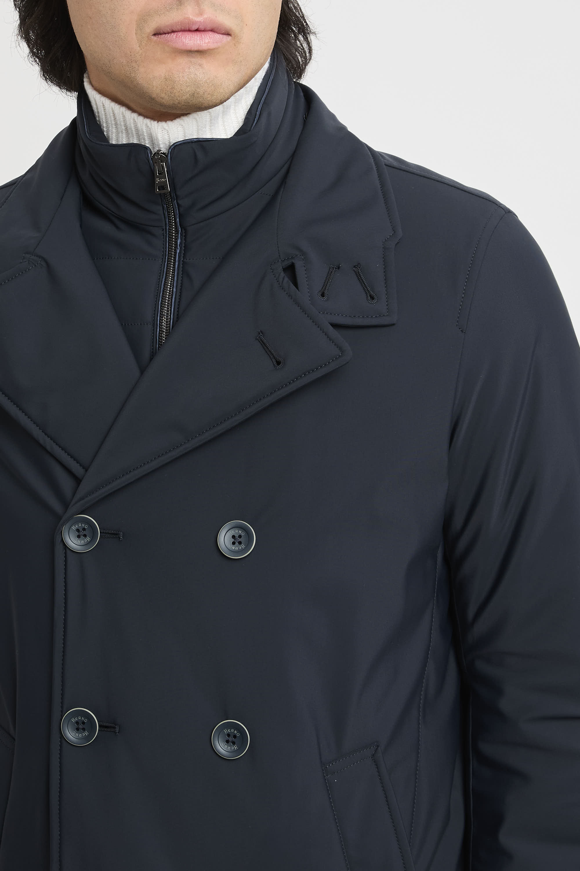 - Zweireihiger Verschluss mit Knöpfen