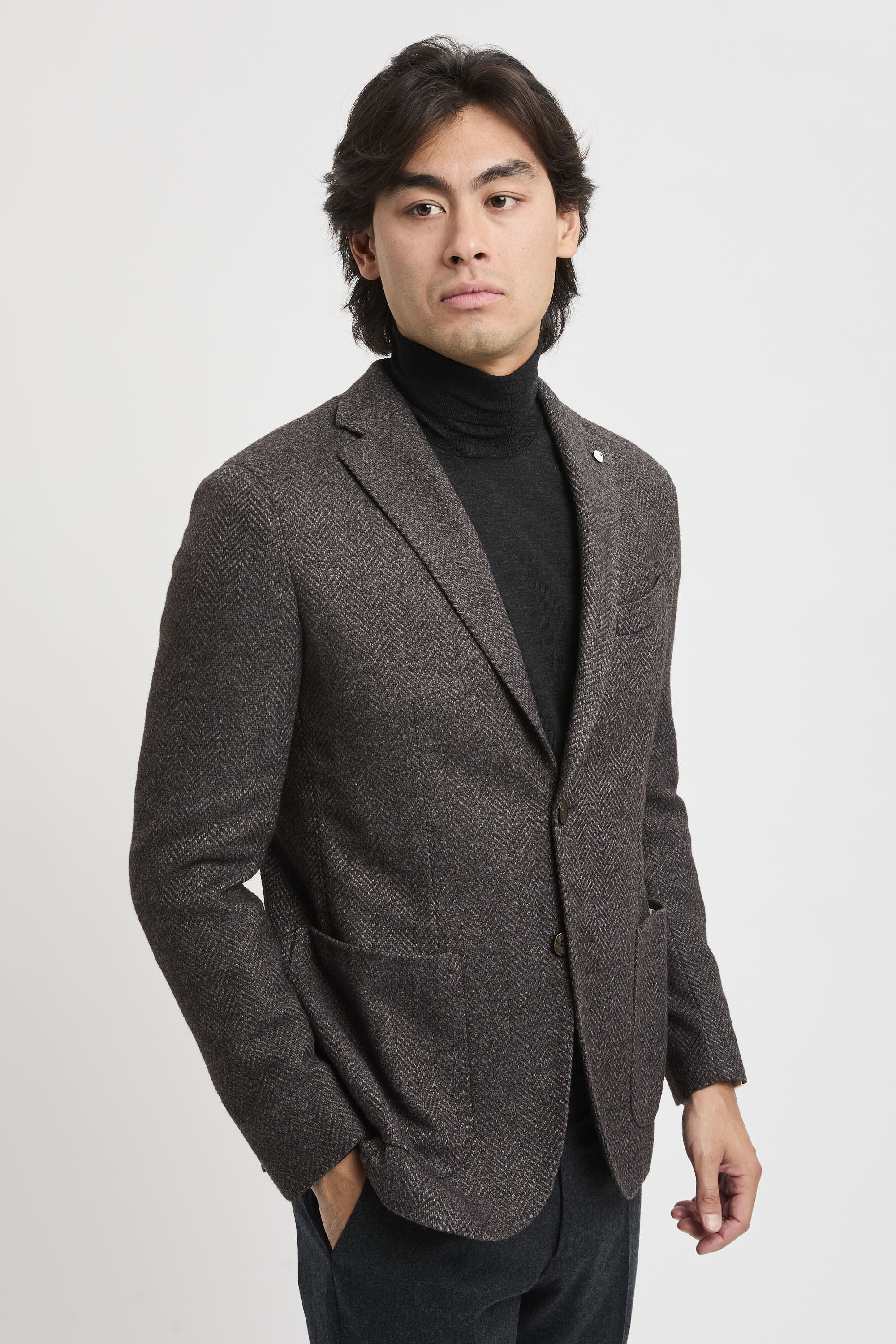 Einreihige jacke mit fischgrätenmuster