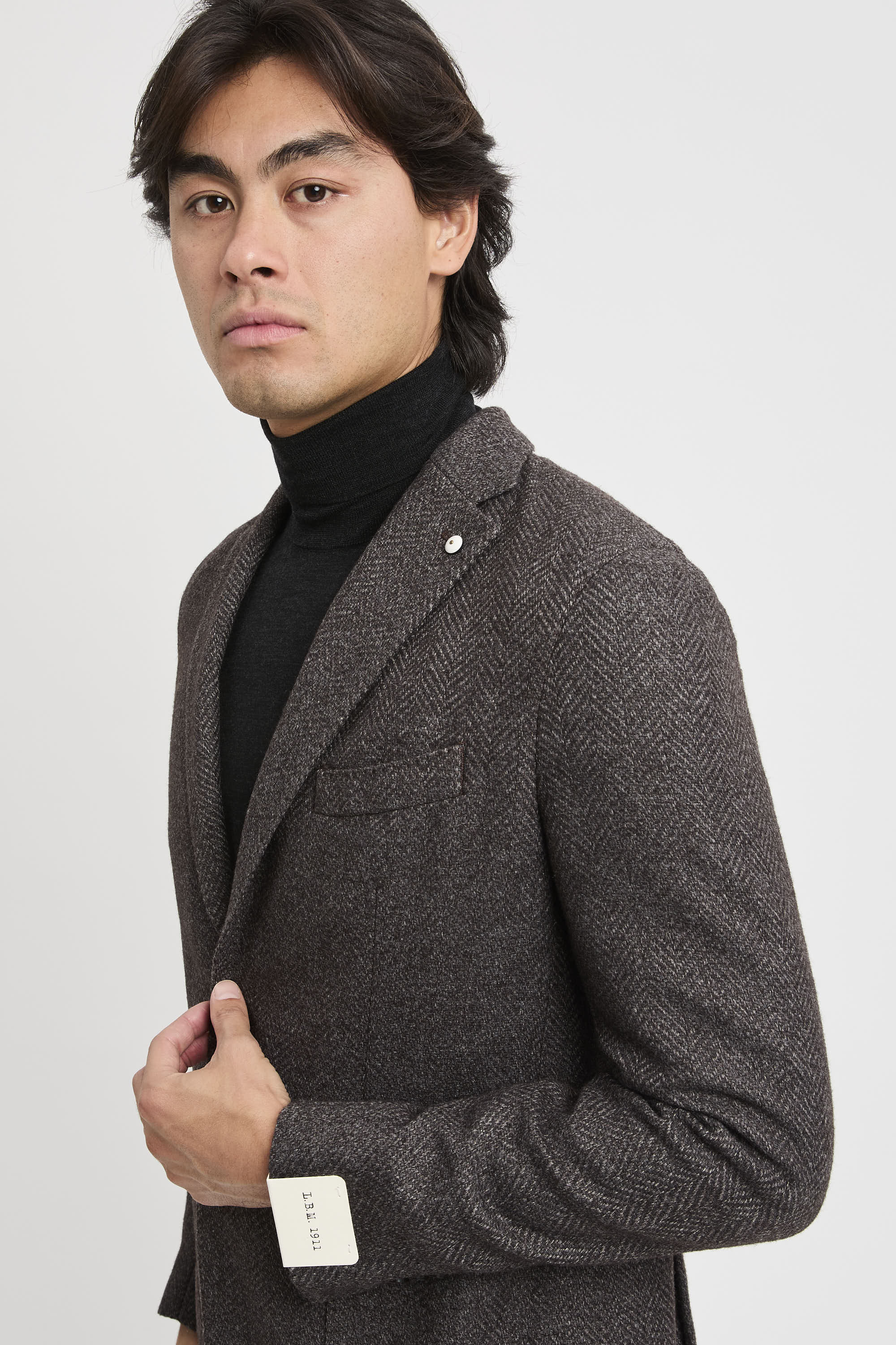 Das Model trägt Größe 48, ist 1,83 cm groß und wiegt 72 kg.