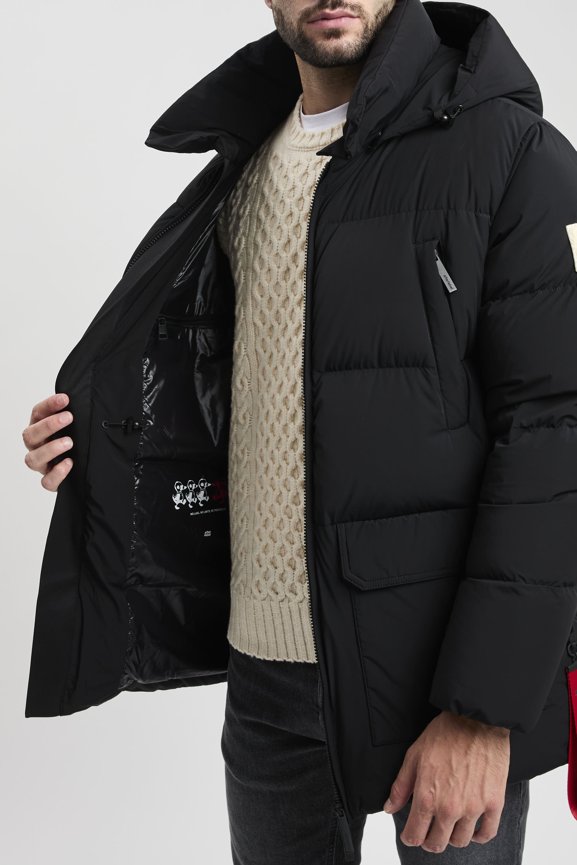 The model wears size M, is 1.84 cm tall and weighs 80 kg.
