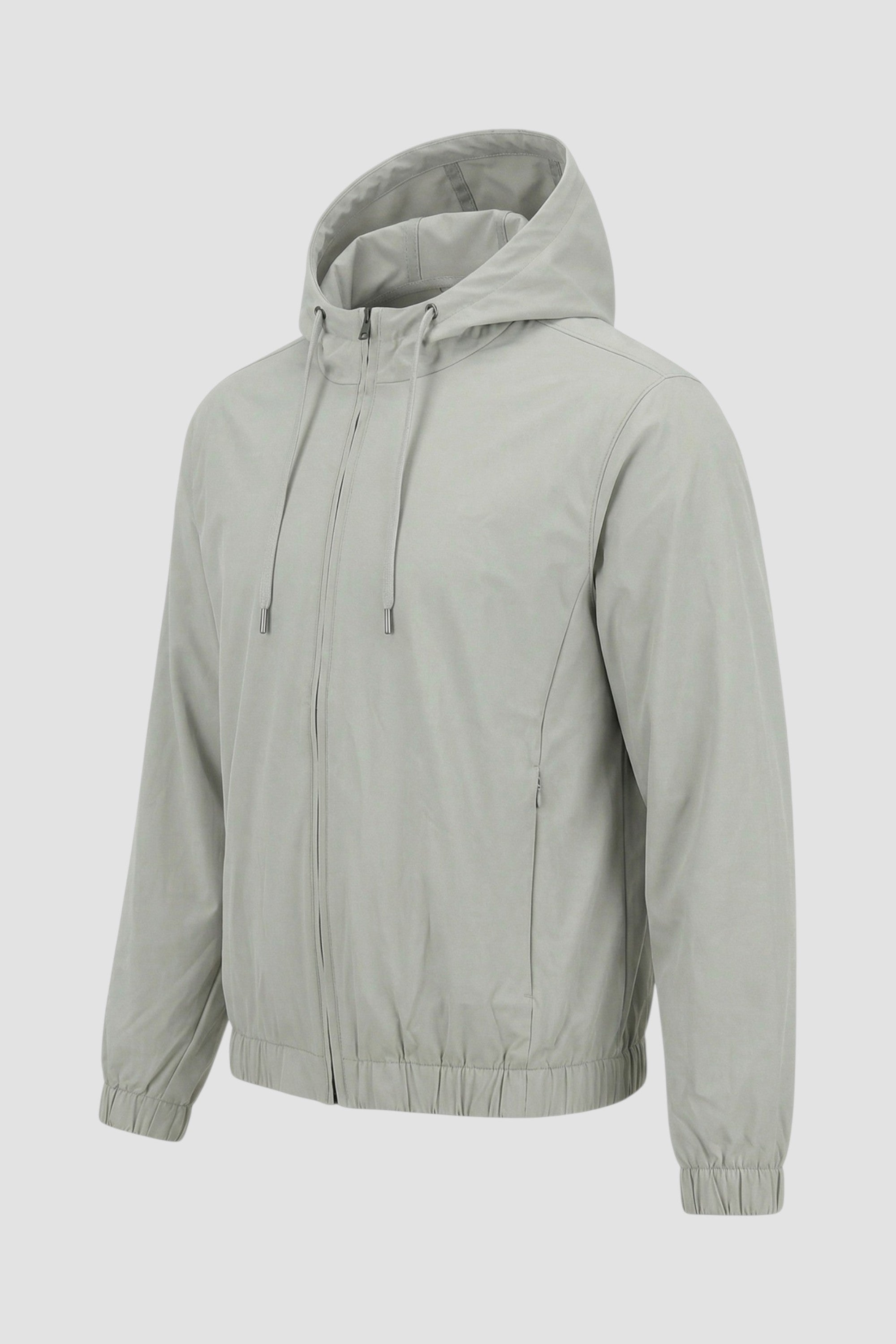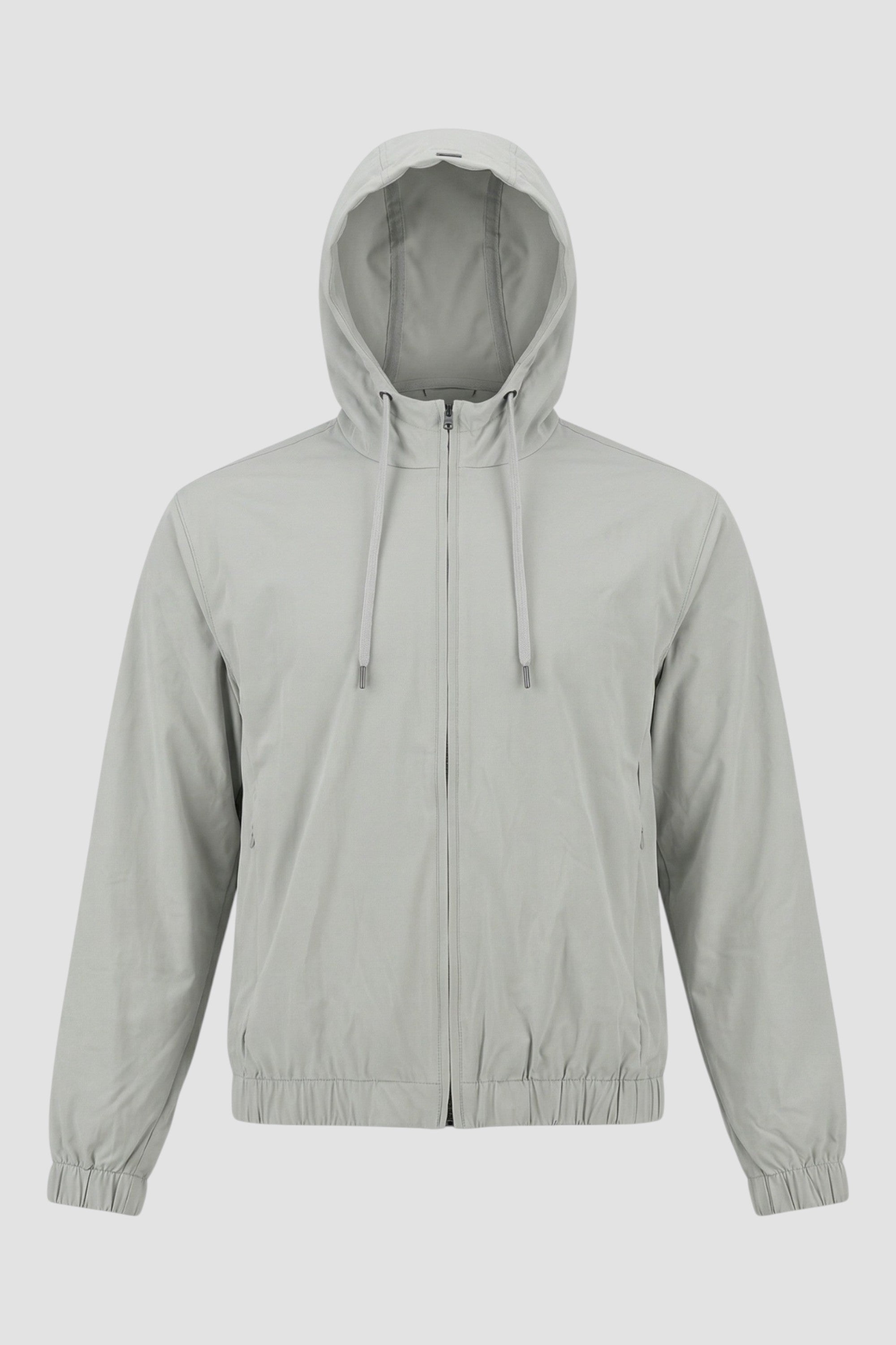- Hood with drawstring