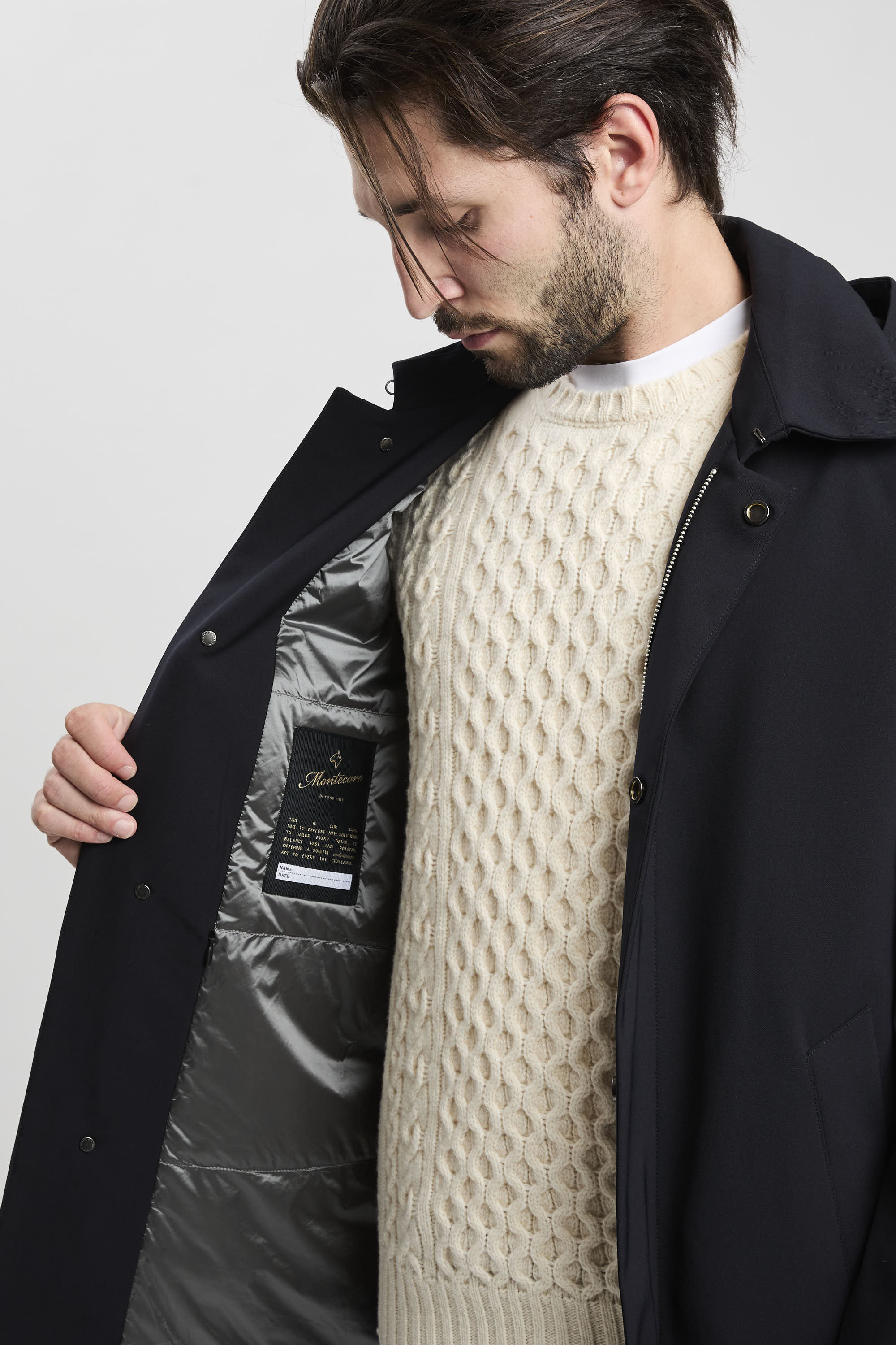 Il modello indossa la taglia 50, è alto 1.84 cm e pesa 80 kg.