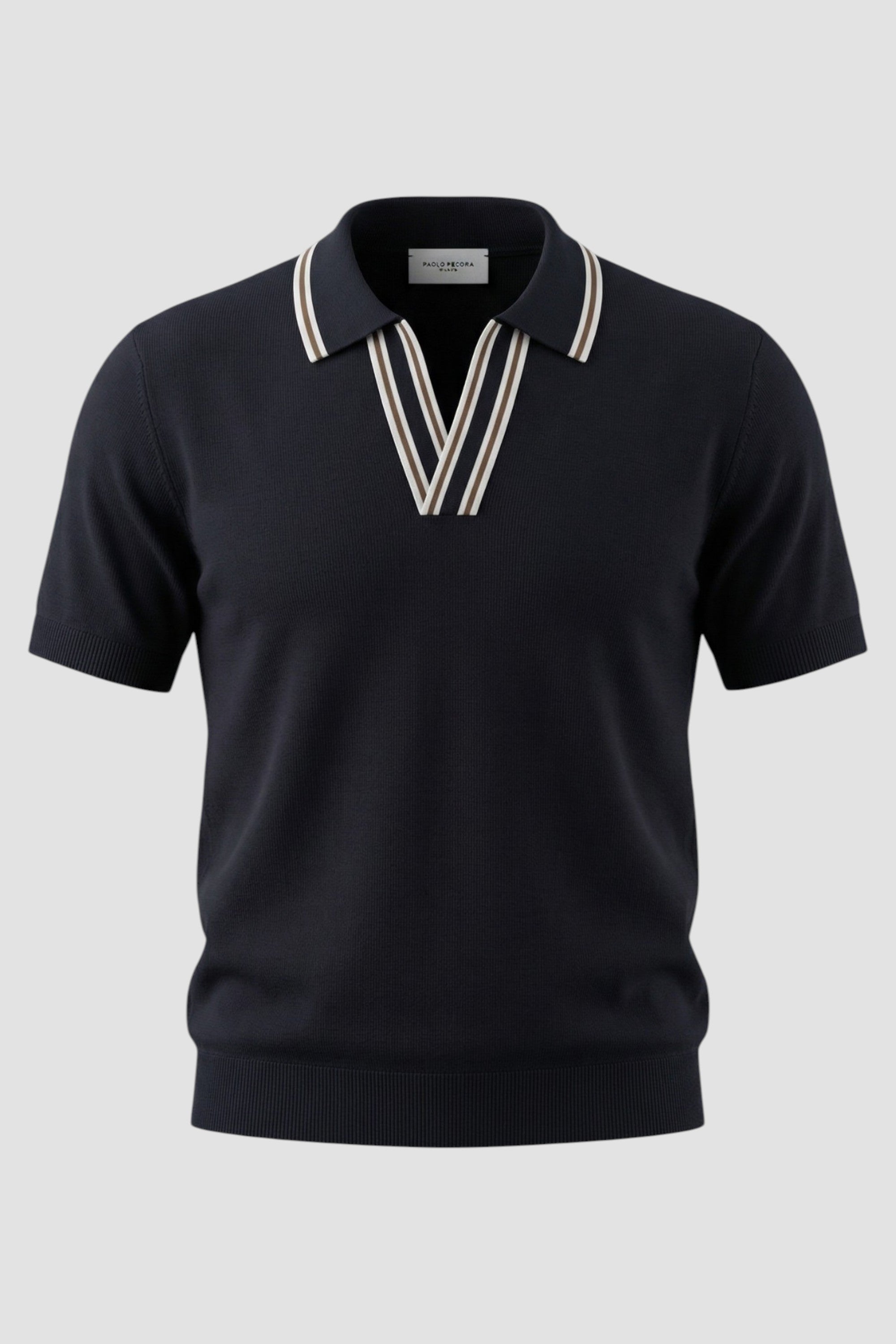 - Contrasting collar and mock placket