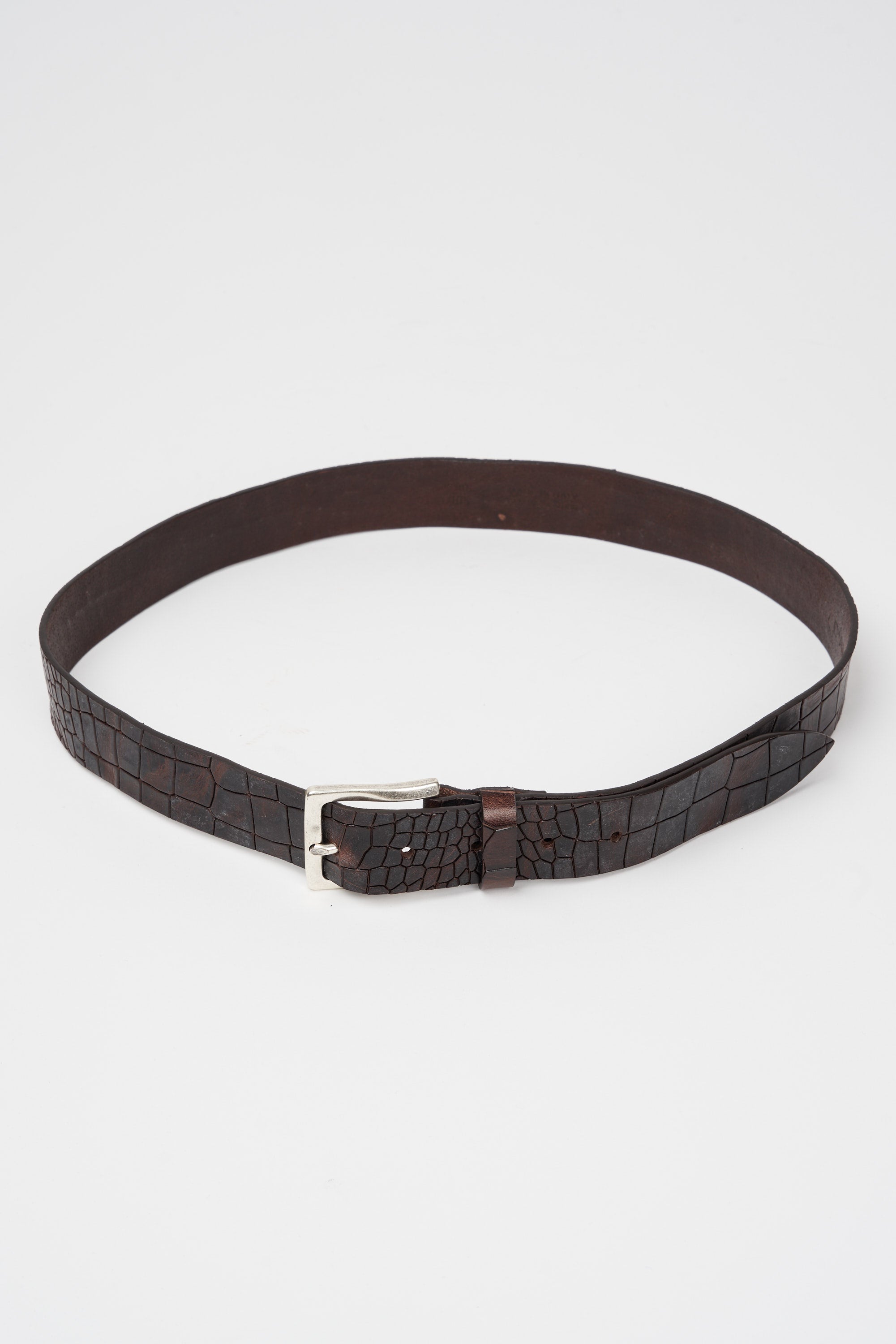 d'Amico porta la classe e l'eleganza direttamente al tuo guardaroba con la cintura in cuoio realizzata per l'Autunno/Inverno '23. Questa cintura, dal raffinato effetto vintage, presenta un disegno di stampa cocco che aggiunge un tocco di carattere senza eguali al tuo stile. Il dettaglio finale è un'accattivante chiusura con fibbia metallica che aggiunge un tocco di lusso e durabilità. L'essenza del Made in Italy si riflette in ogni dettaglio di questa cintura, sottolineando l'attenzione alla qualità e alla manifattura. Il colore, un testa di moro profondo, è versatile quanto raffinato, capace di completare qualsiasi look. Materiale: 100% Cuoio.