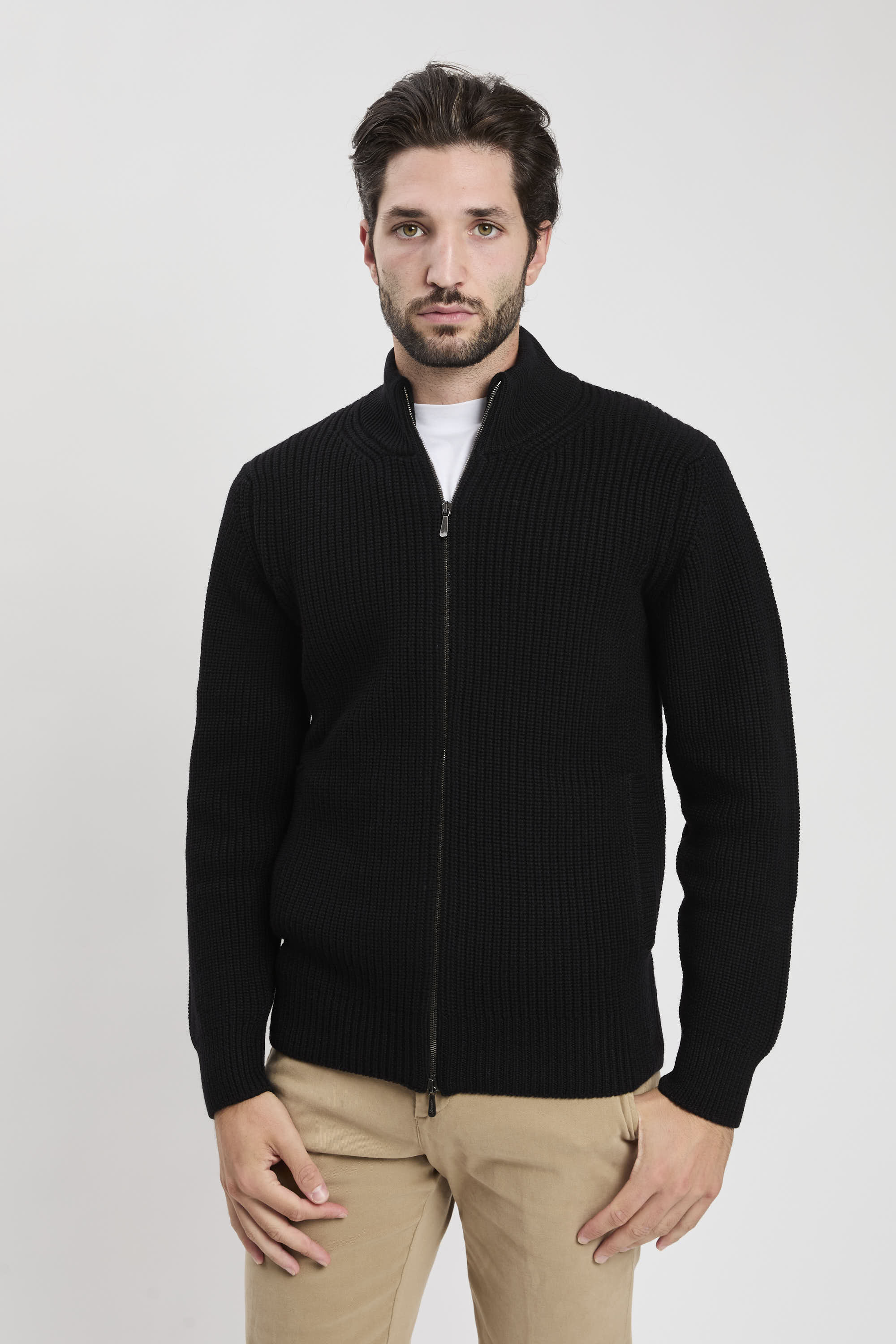 Cardigan con zip in lana merino