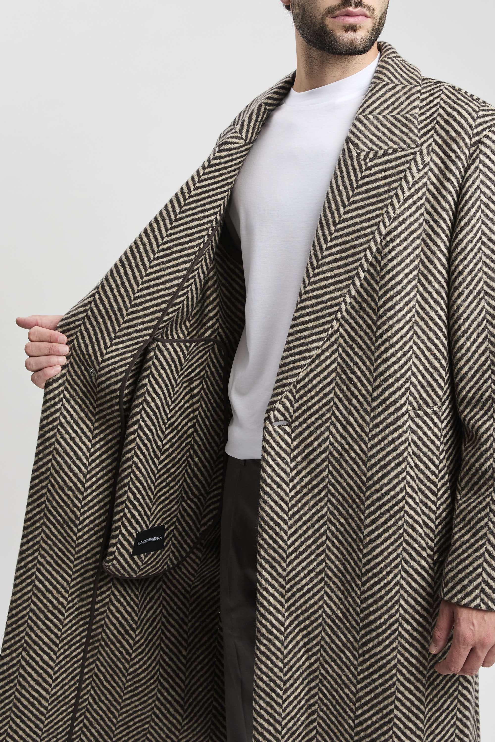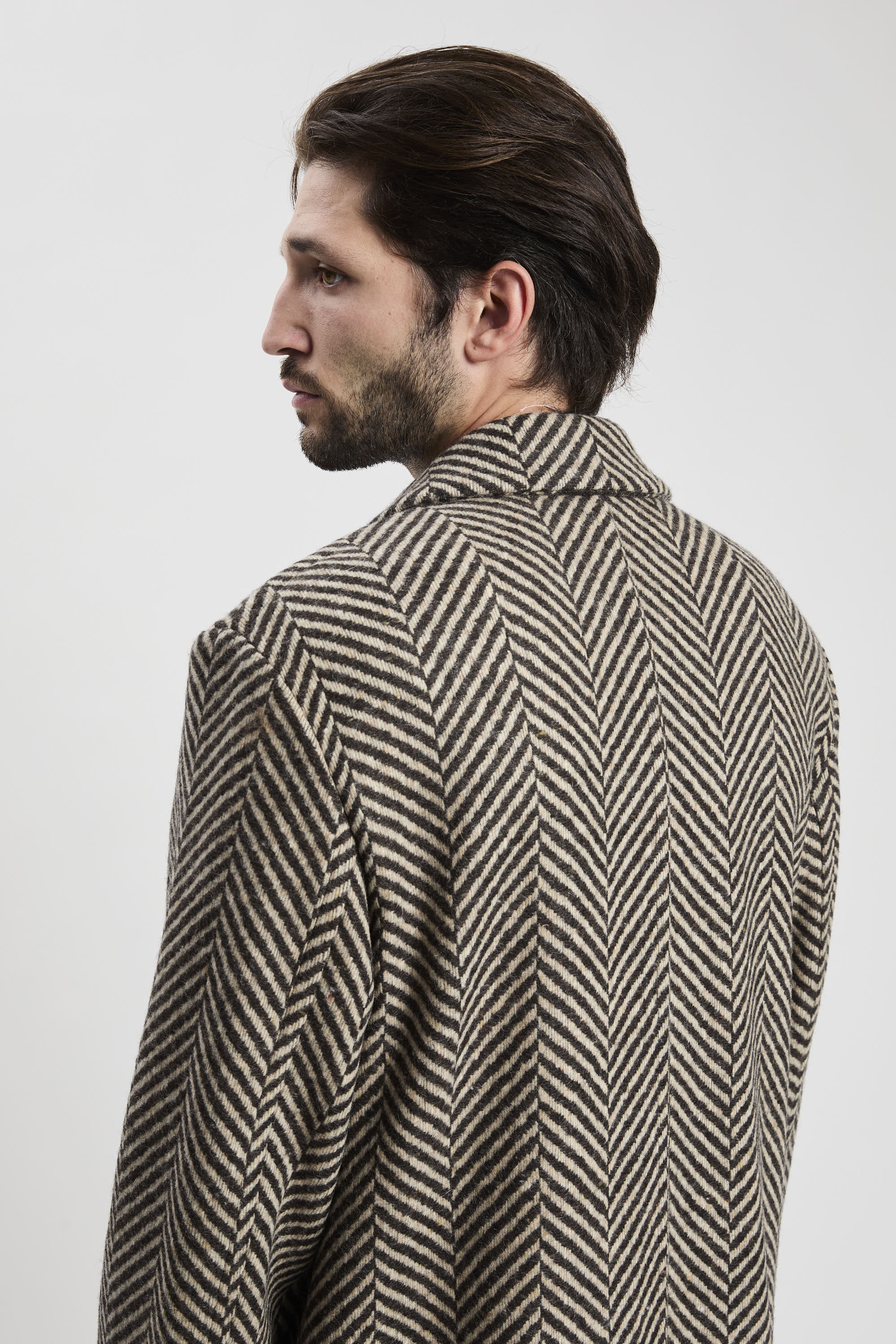 Il modello indossa la taglia 48, è alto 1.84 cm e pesa 80 kg.