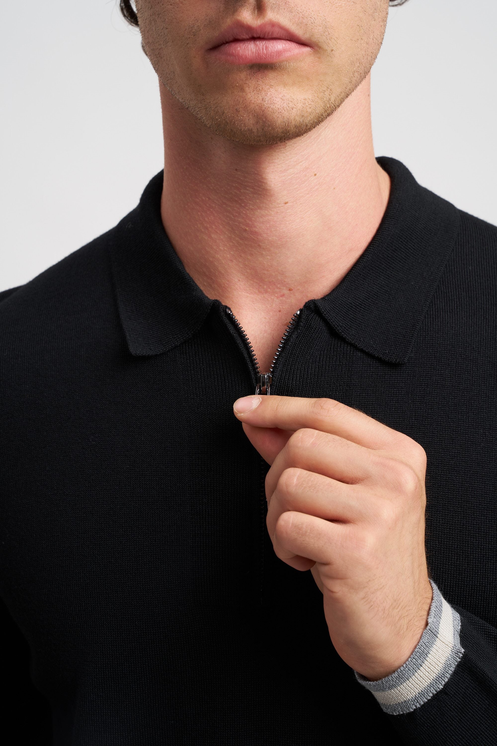 Maglione collo polo con zip in lana vergine rasata
