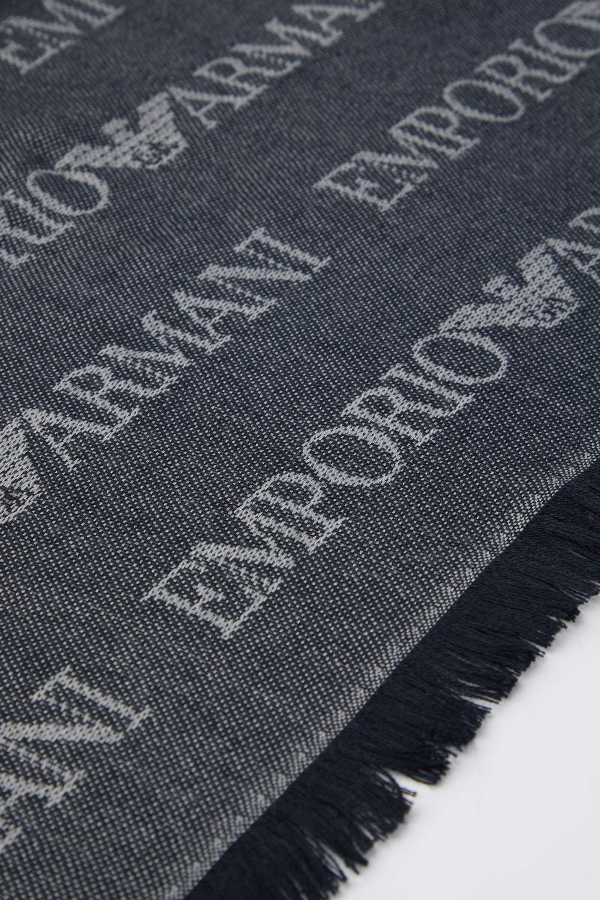 Sciarpa misto lana vergine logo lettering jacquard e frange