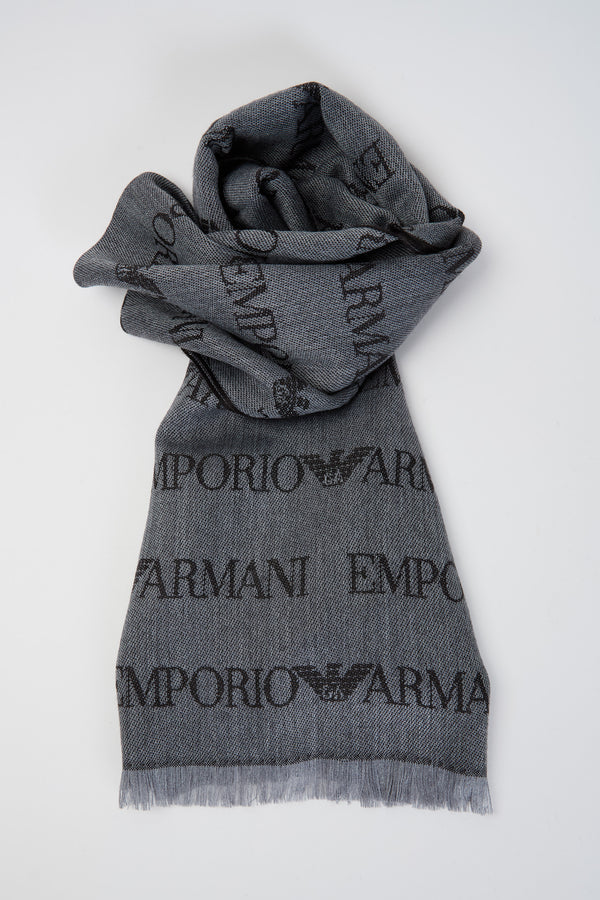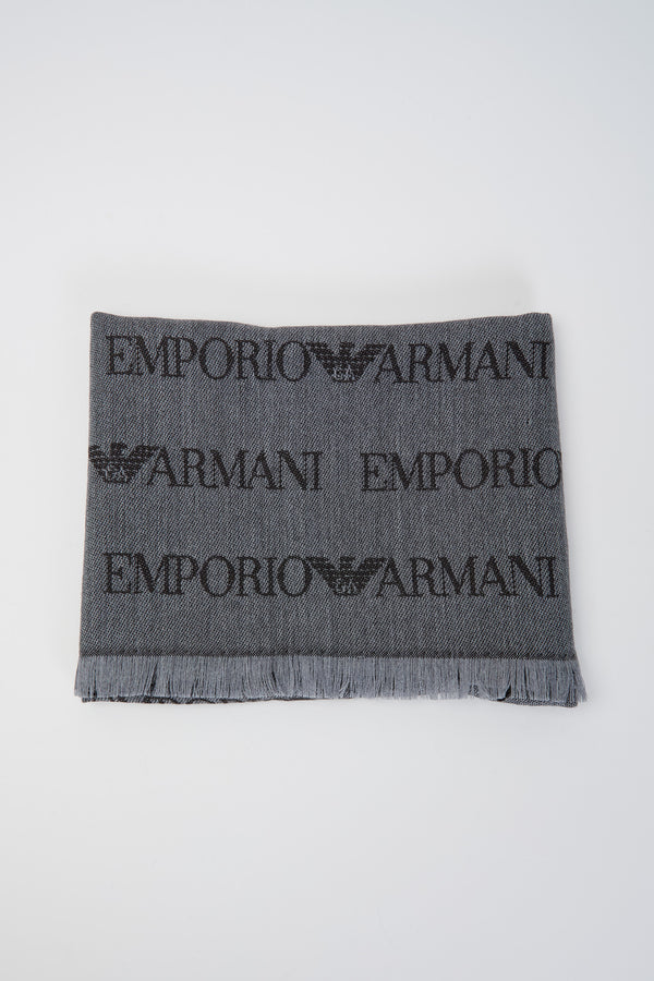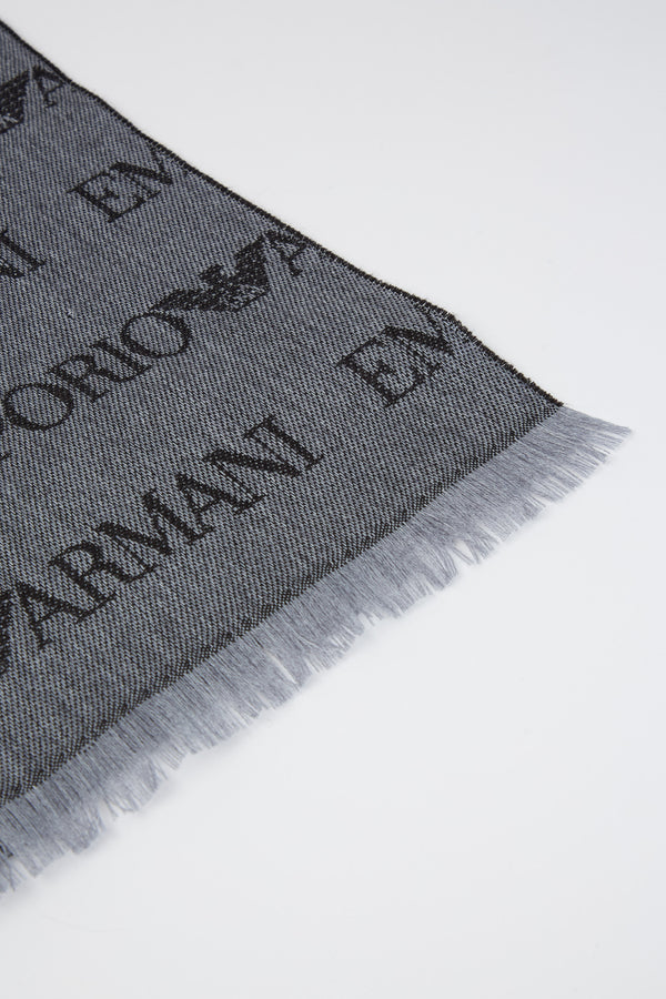 Sciarpa misto lana vergine logo lettering jacquard e frange