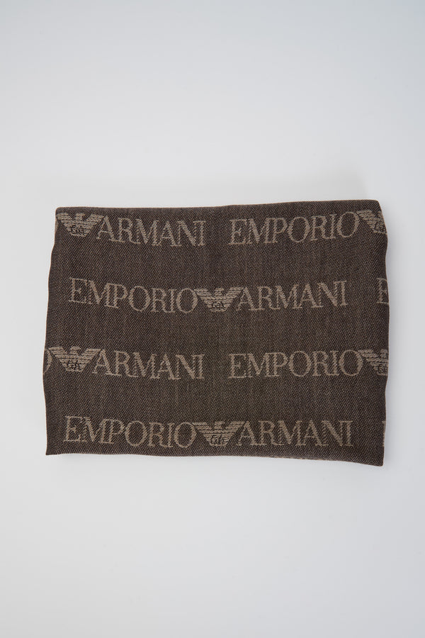 Sciarpa misto lana vergine logo lettering jacquard e frange