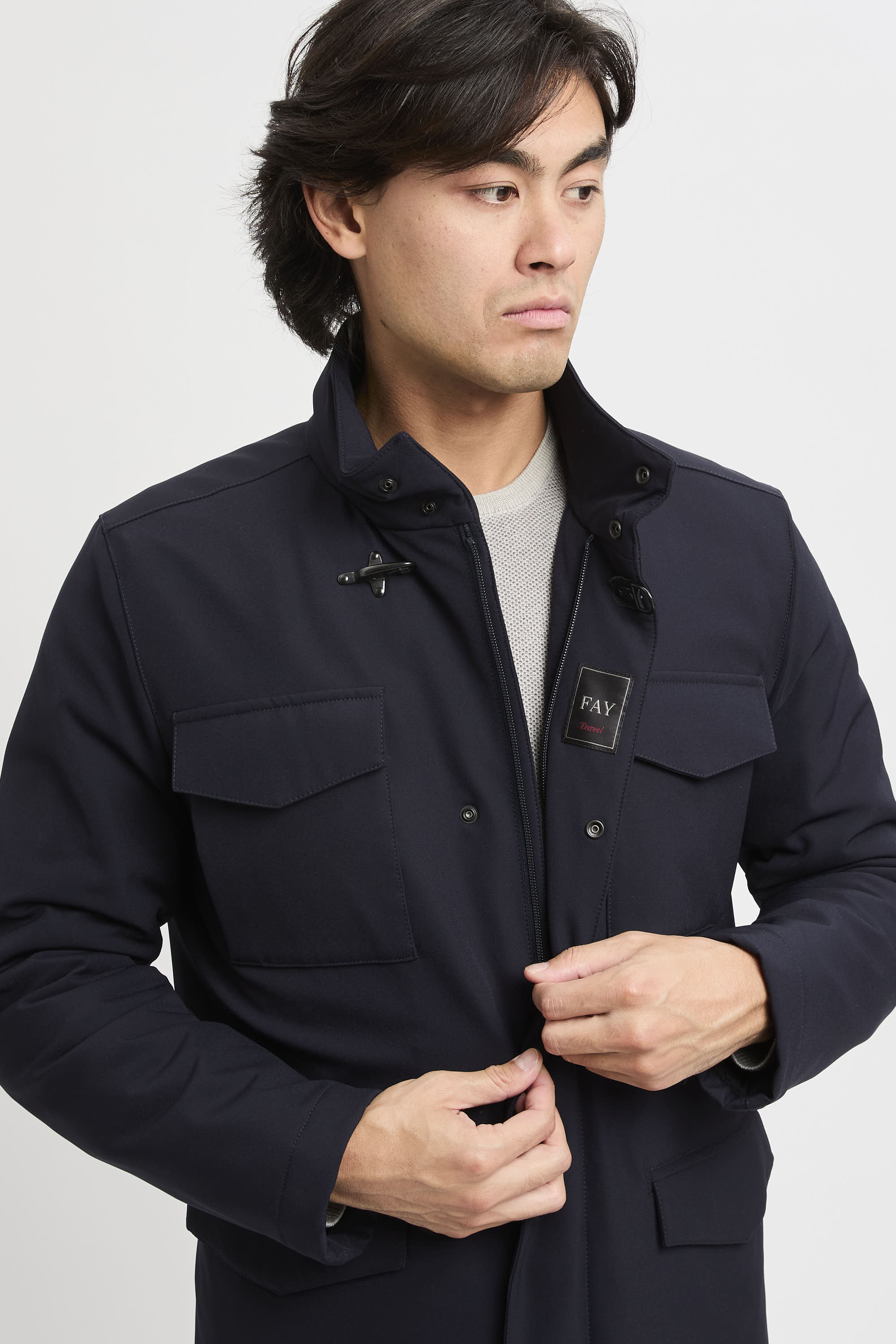 - Due tasche inferiori a filetto con pattina e due superiori a toppa con pattina