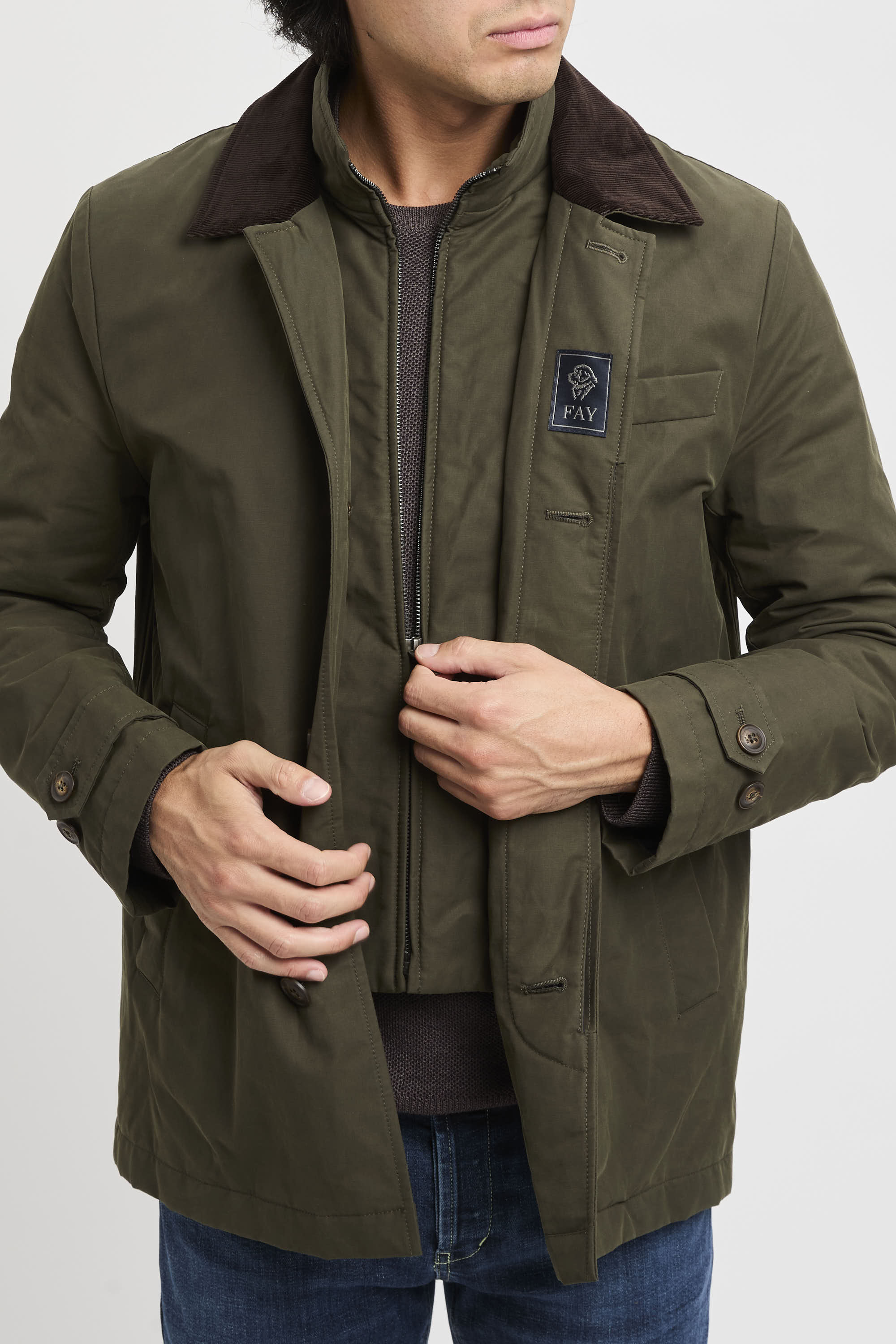 - Tasche laterali a filo (una con etichetta in pelle logo Fay) , taschino pochette e tasca interna