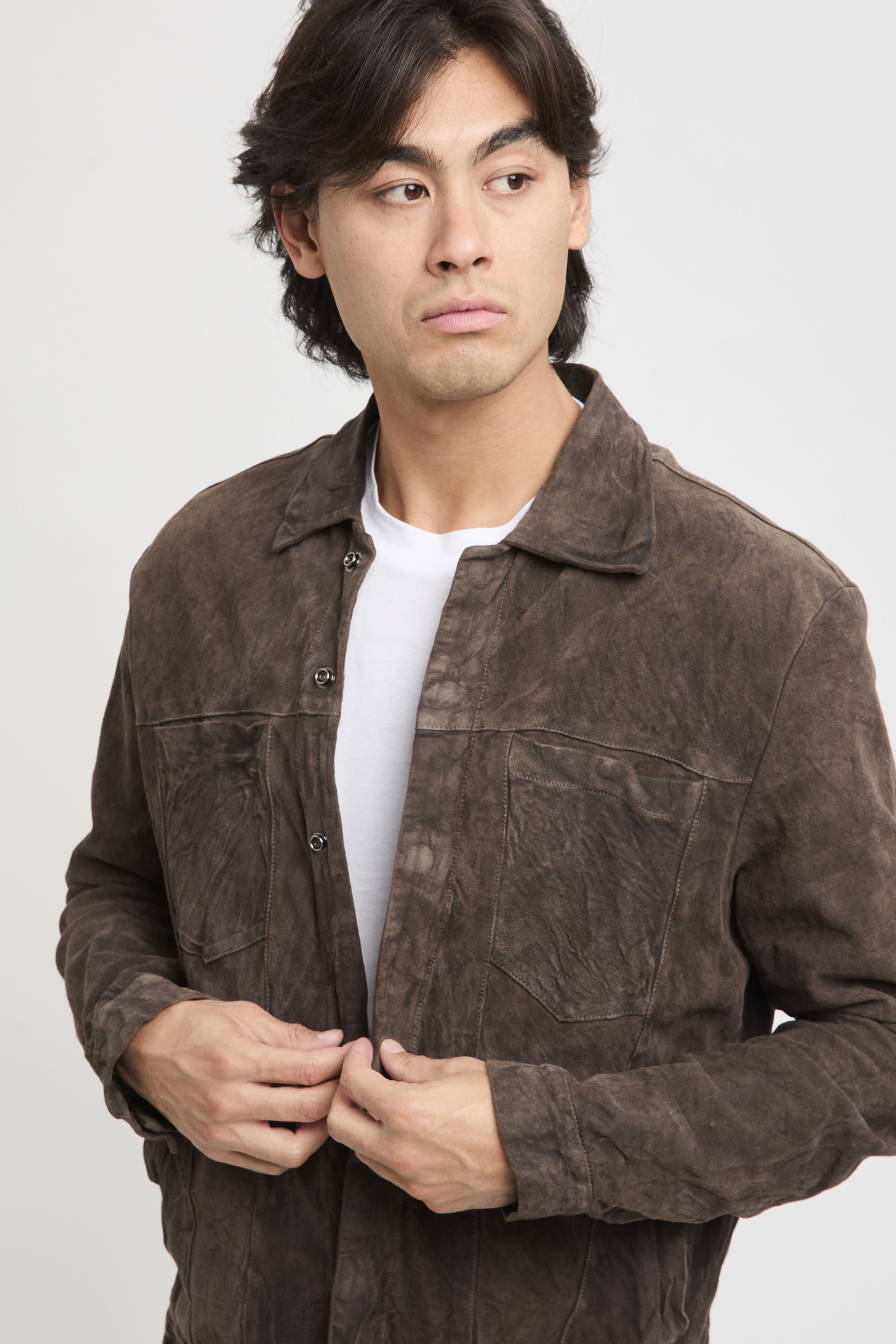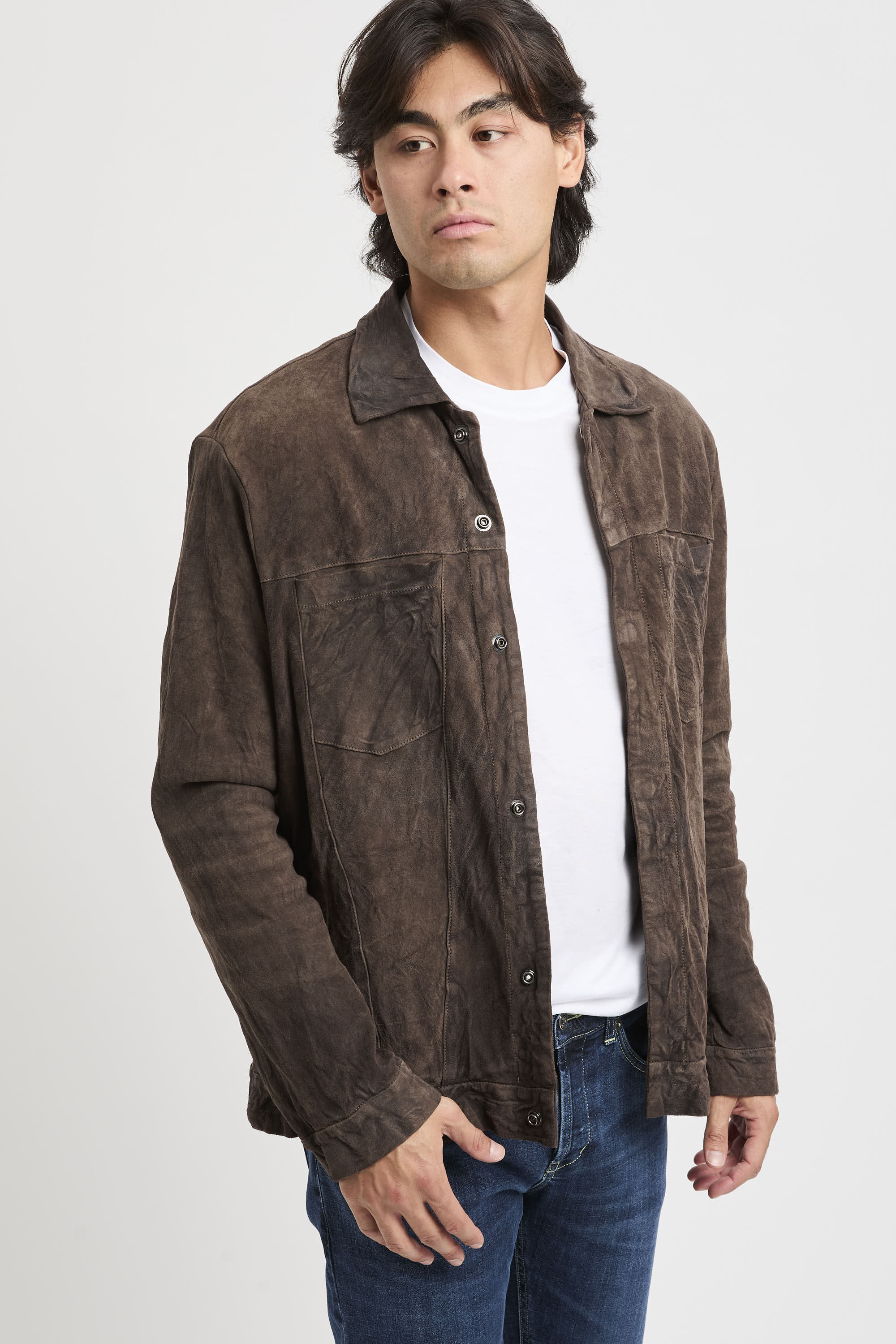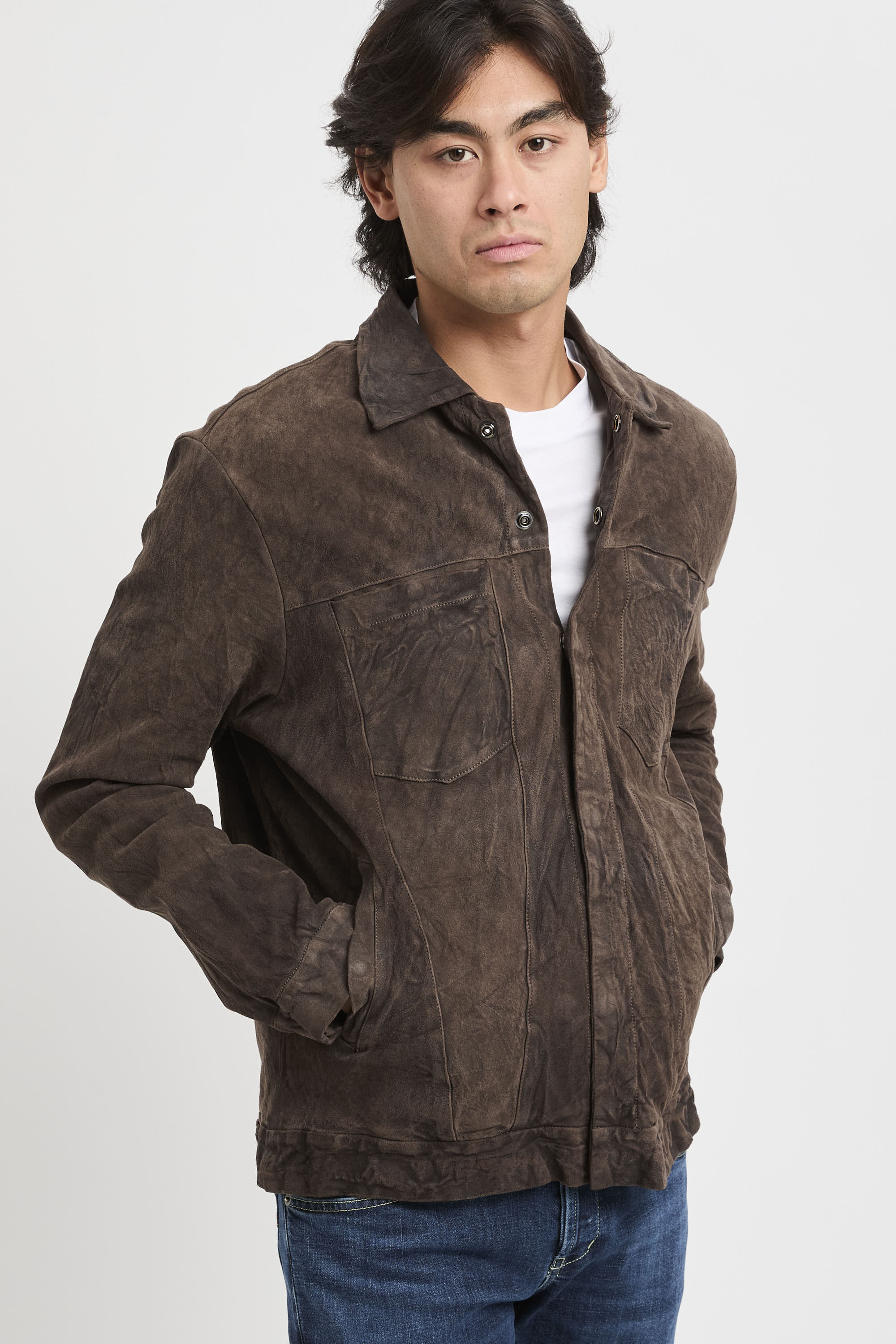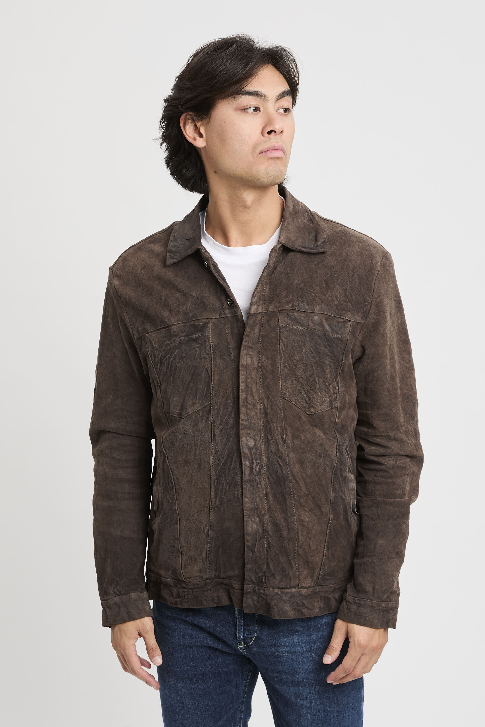- Giacca in pelle effetto usurato