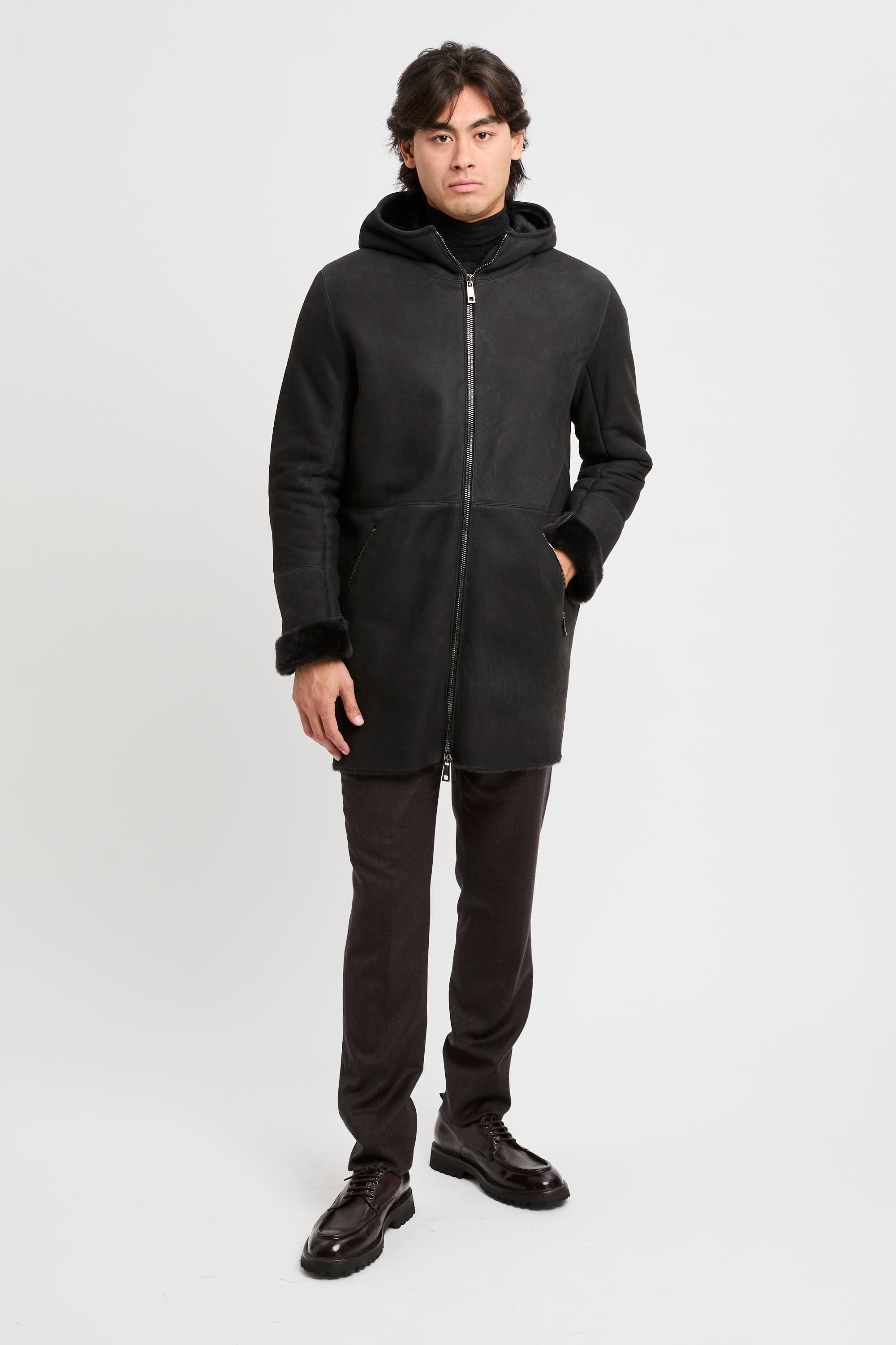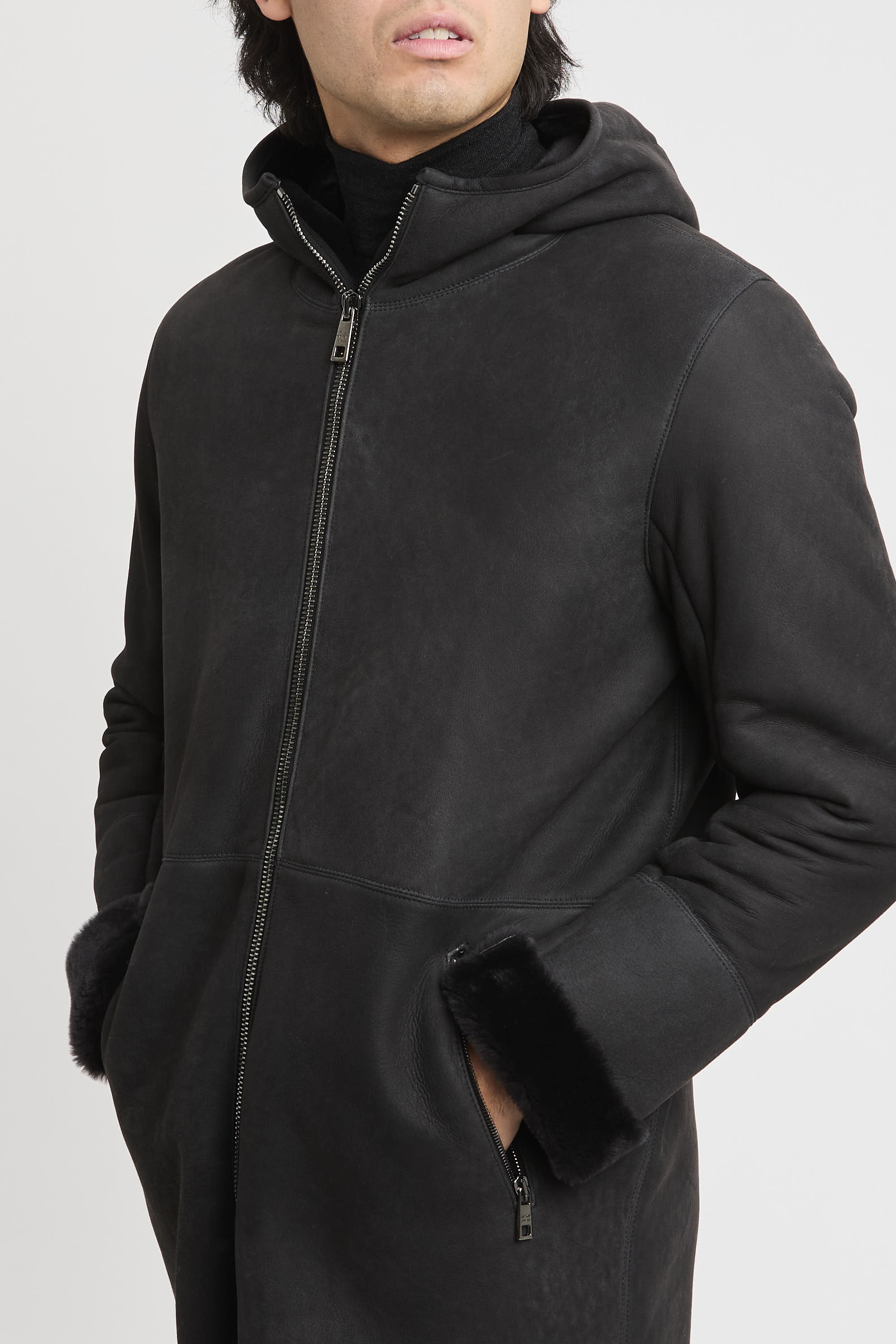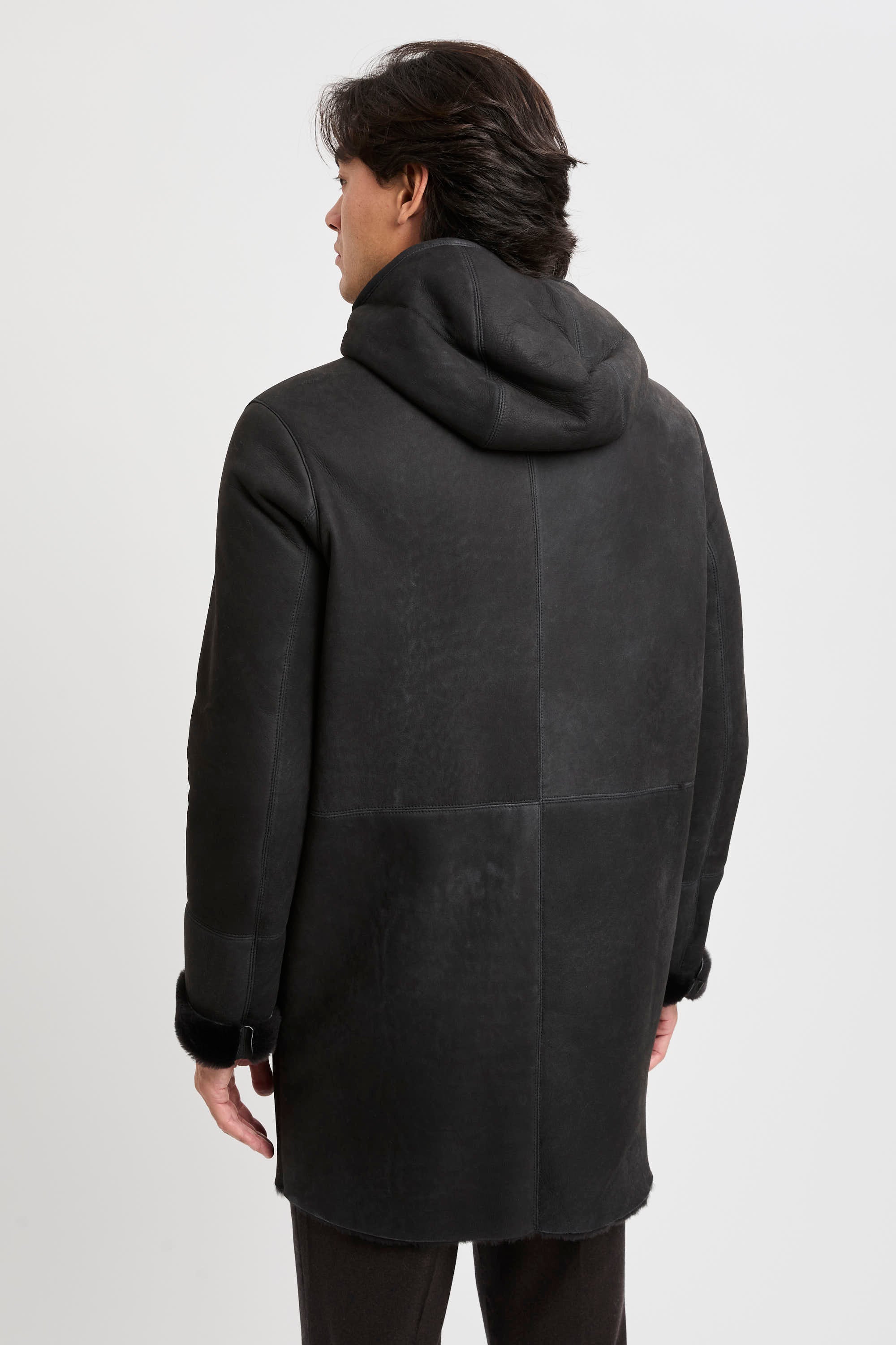 - Montone lungo con cappuccio in pelle d'agnello