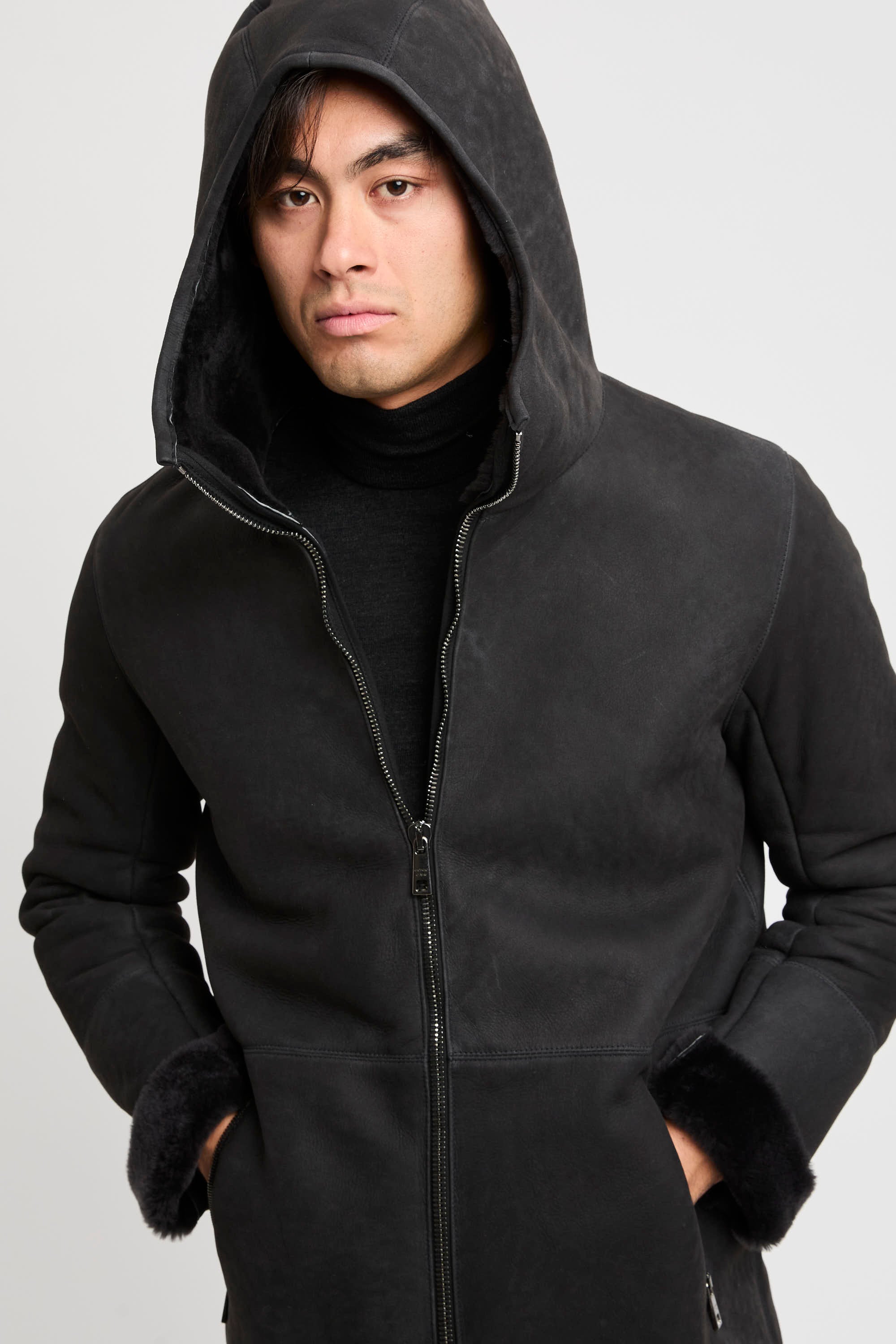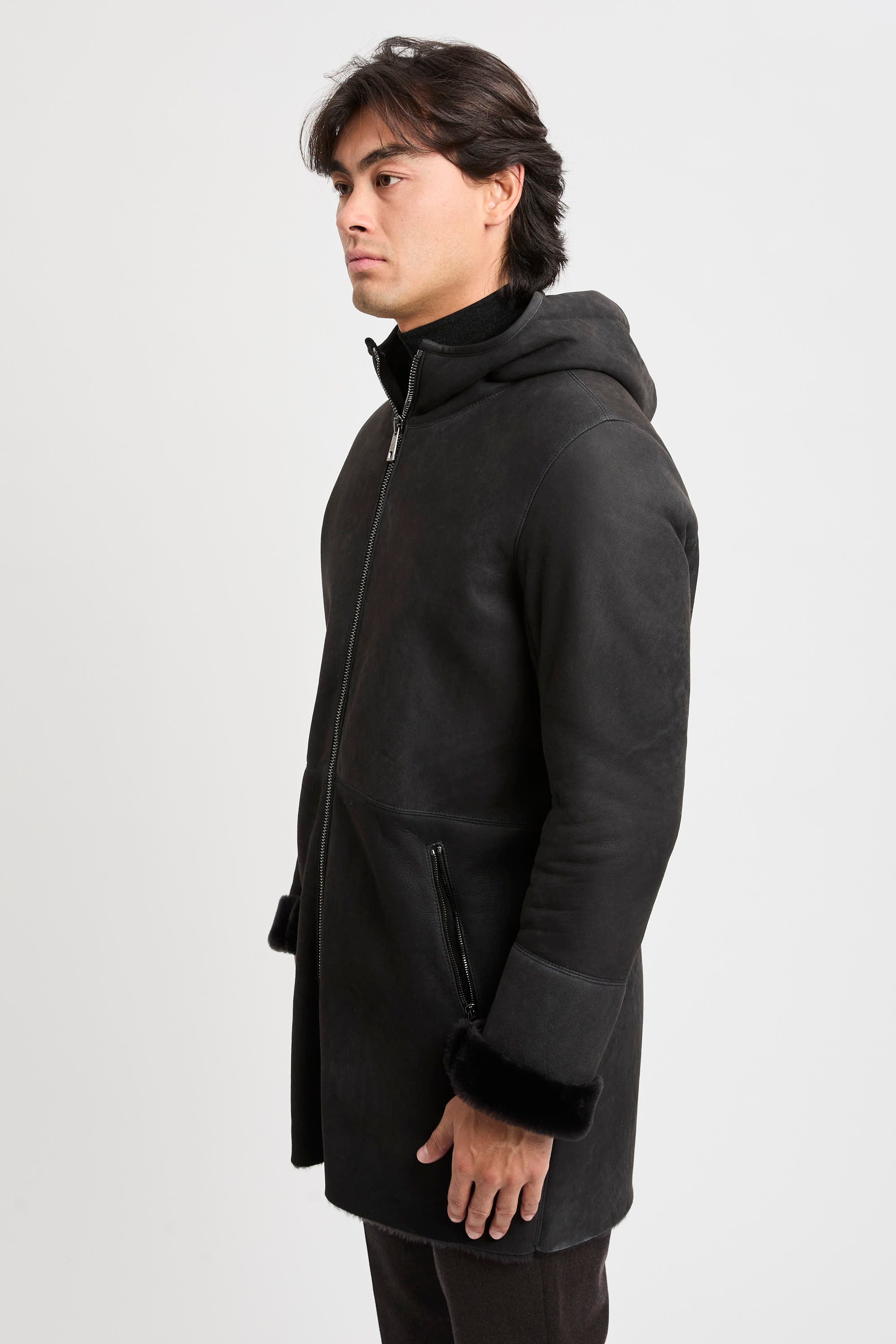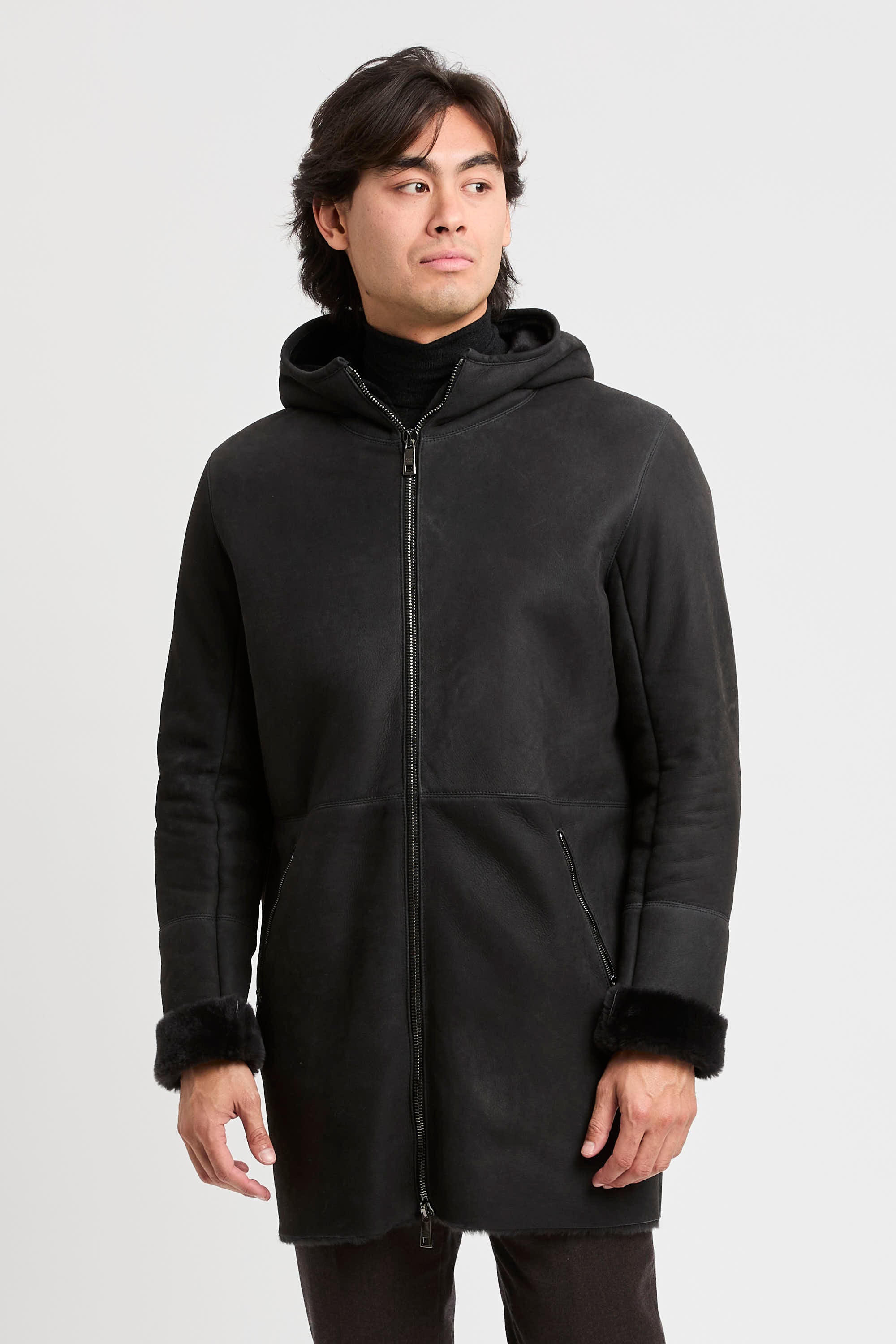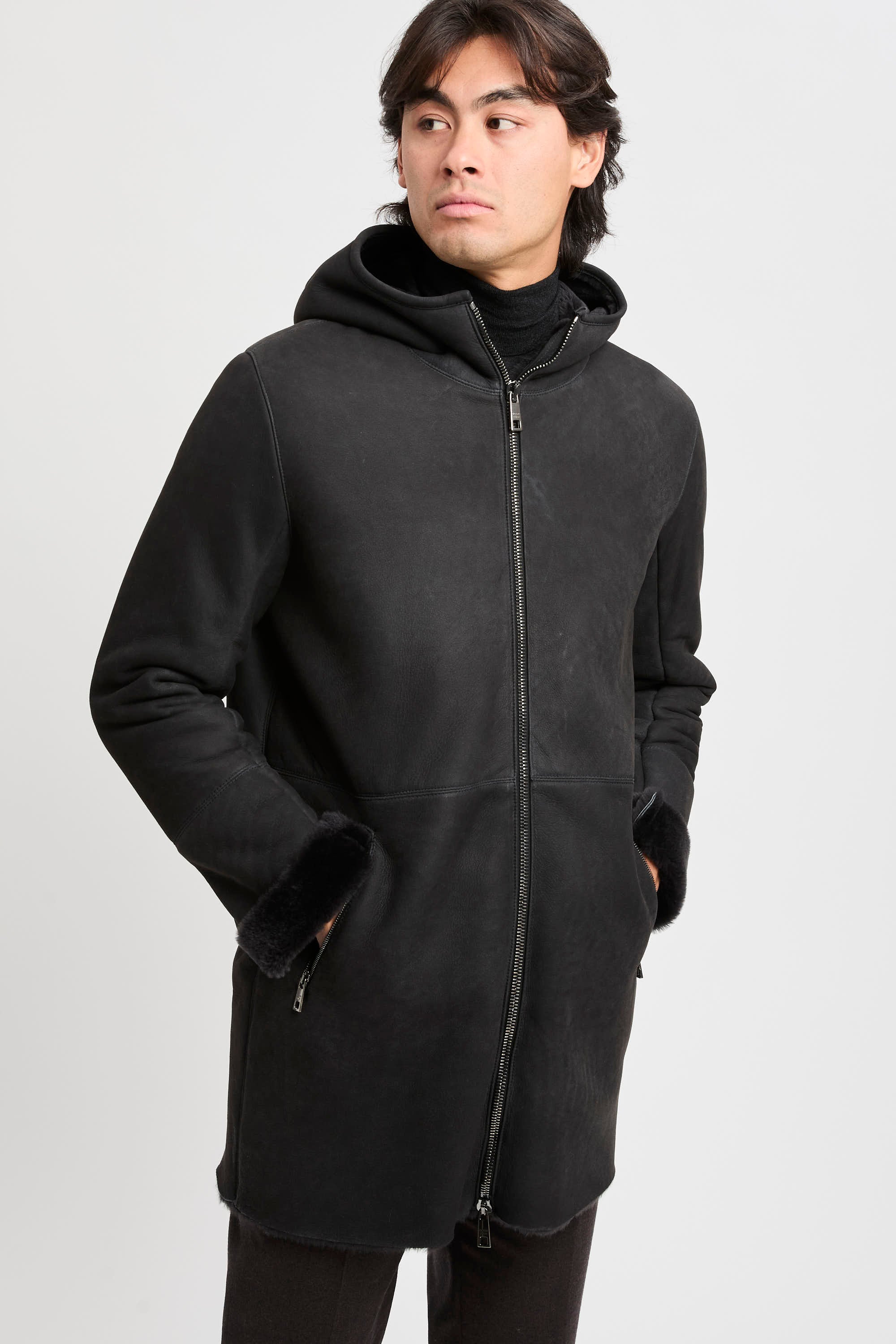 - Montone lungo con cappuccio in pelle d'agnello