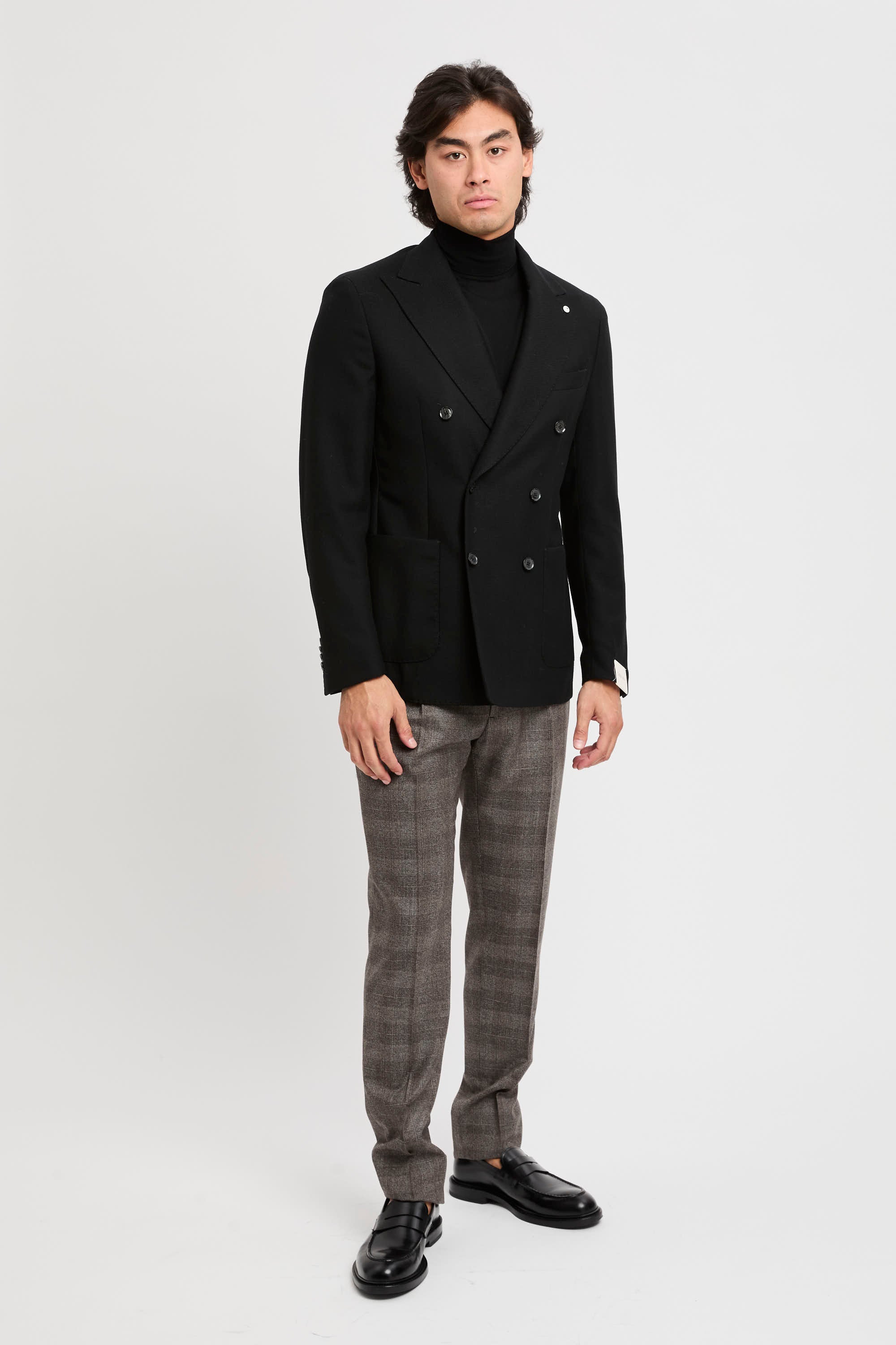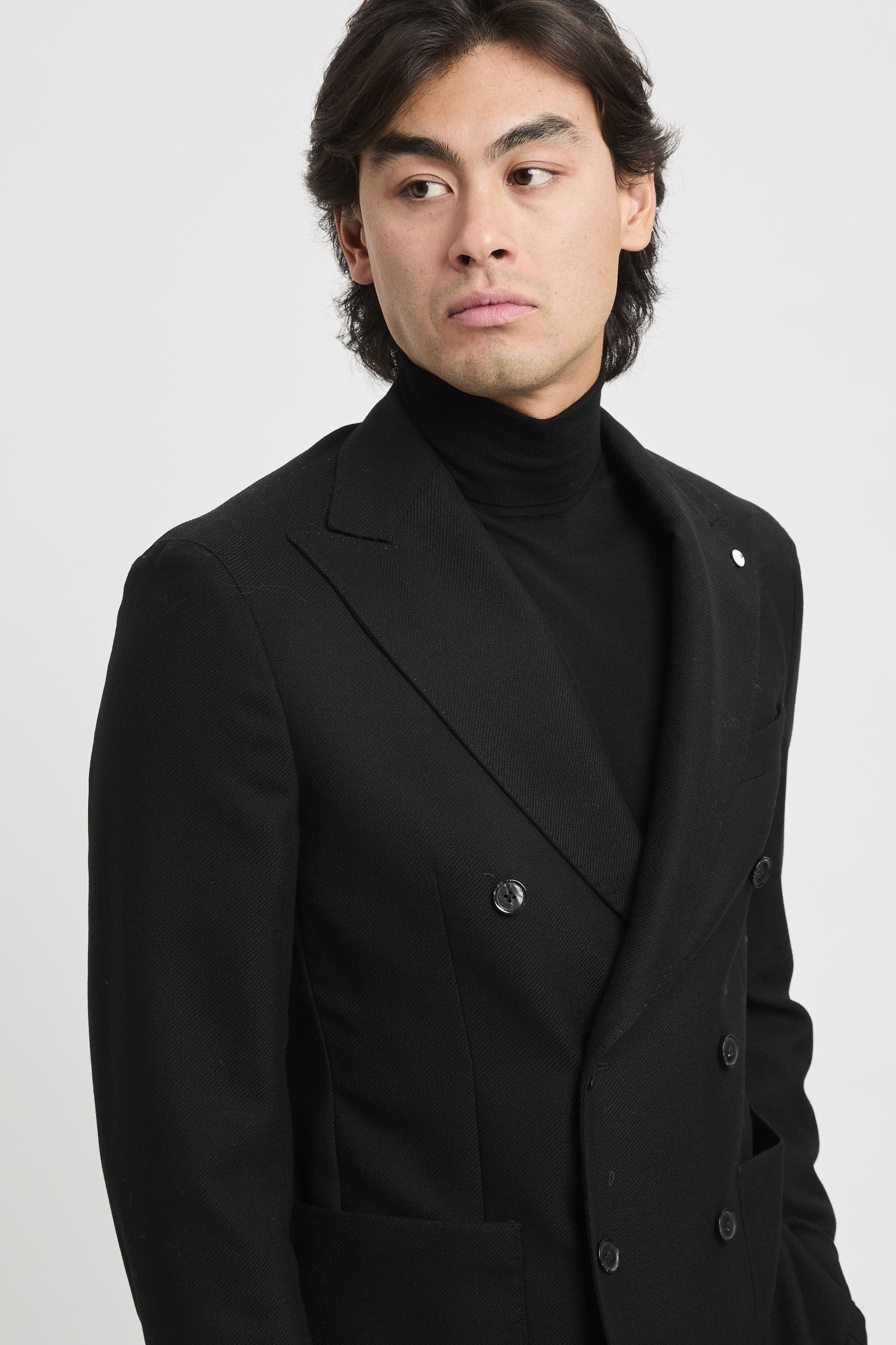 Il modello indossa la taglia 48, è alto 1.83 cm e pesa 72 kg.