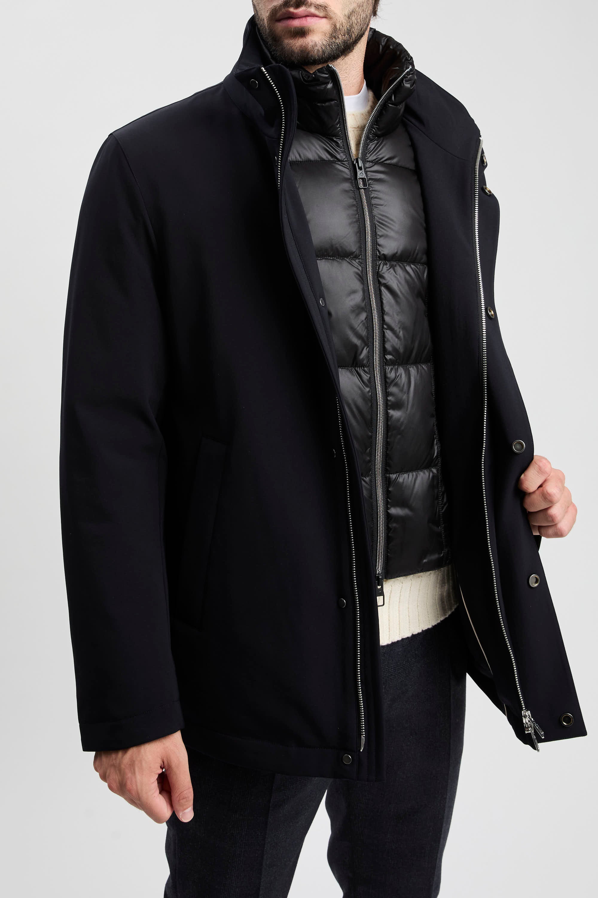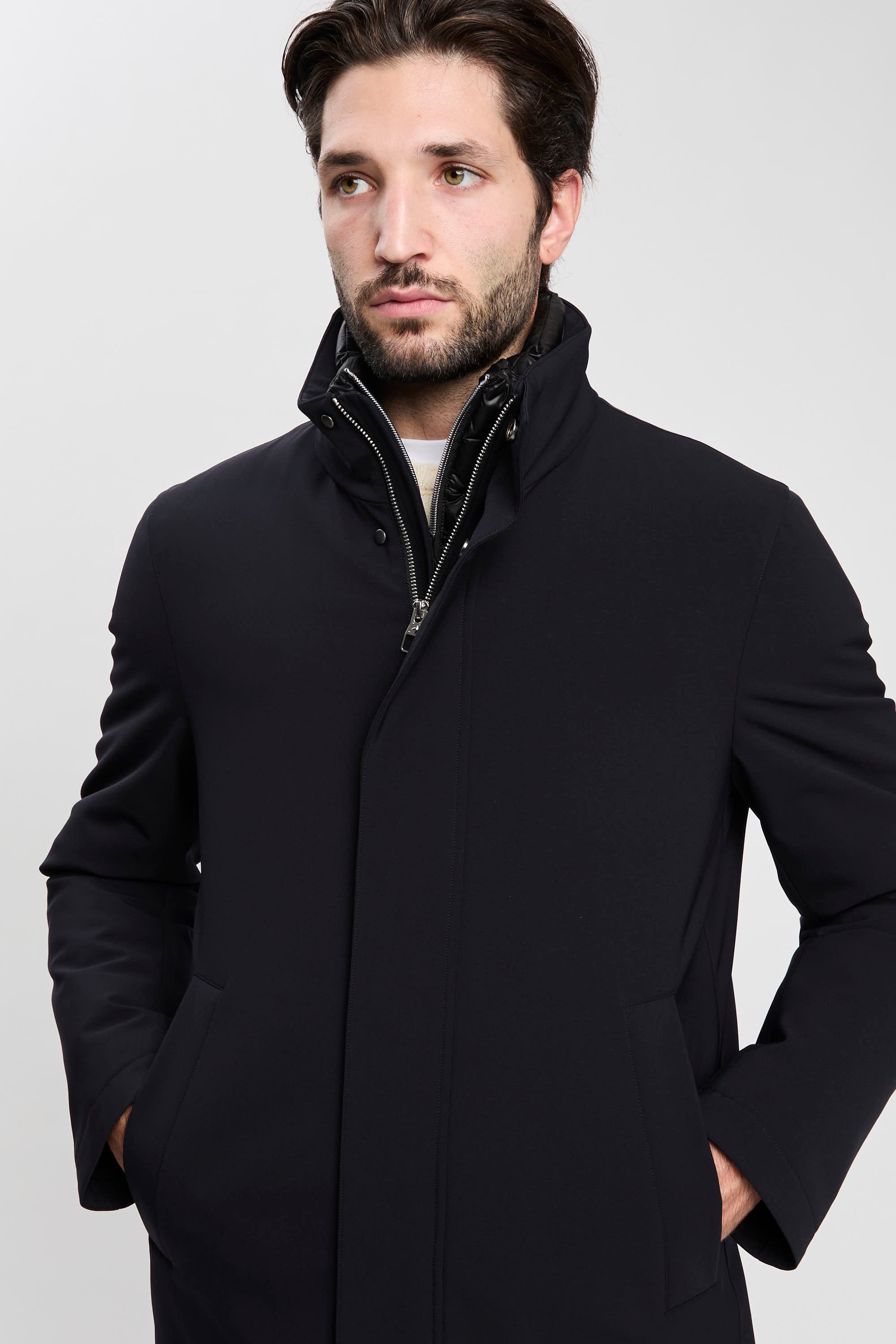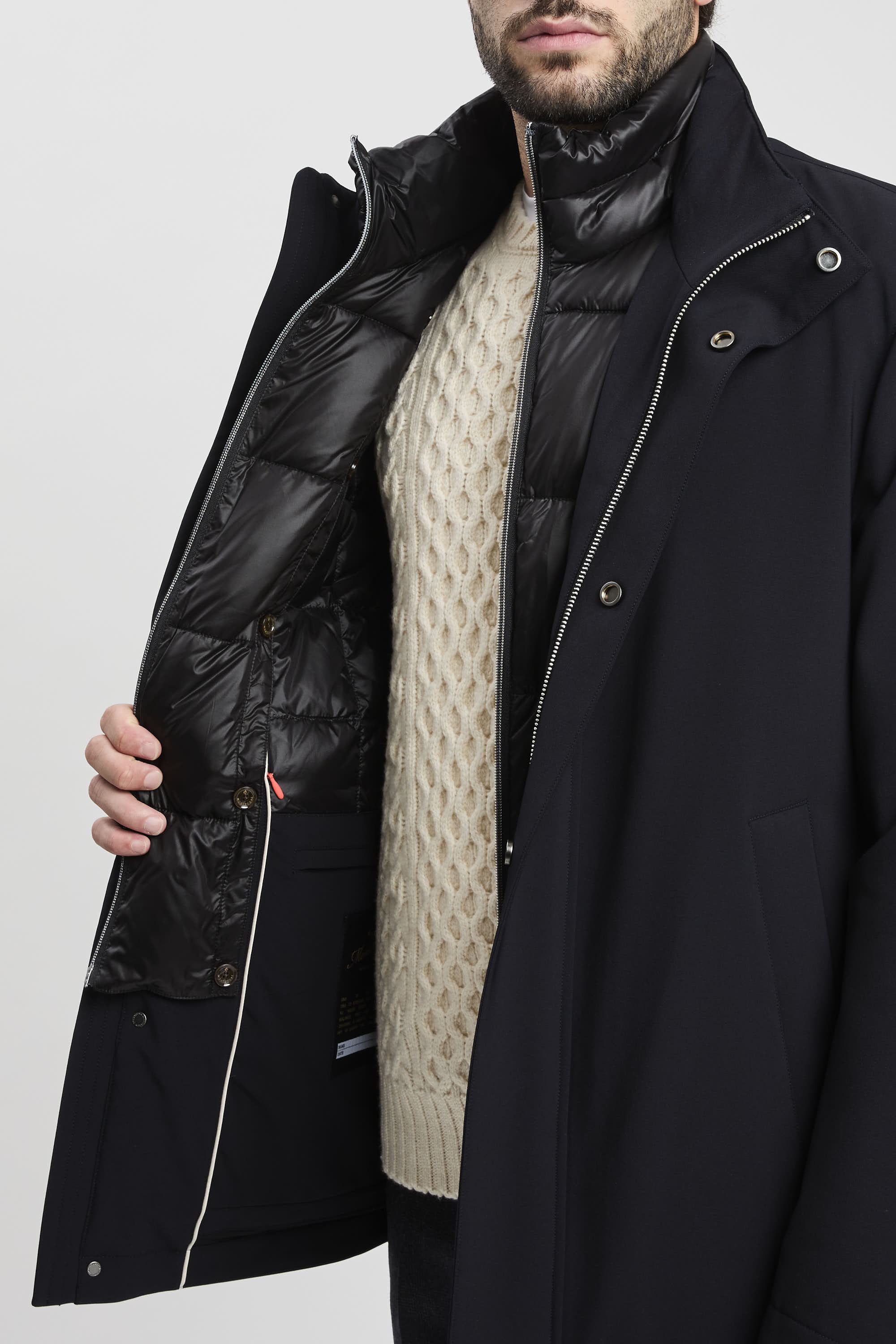 Il modello indossa la taglia 50, è alto 1.84 cm e pesa 80 kg.