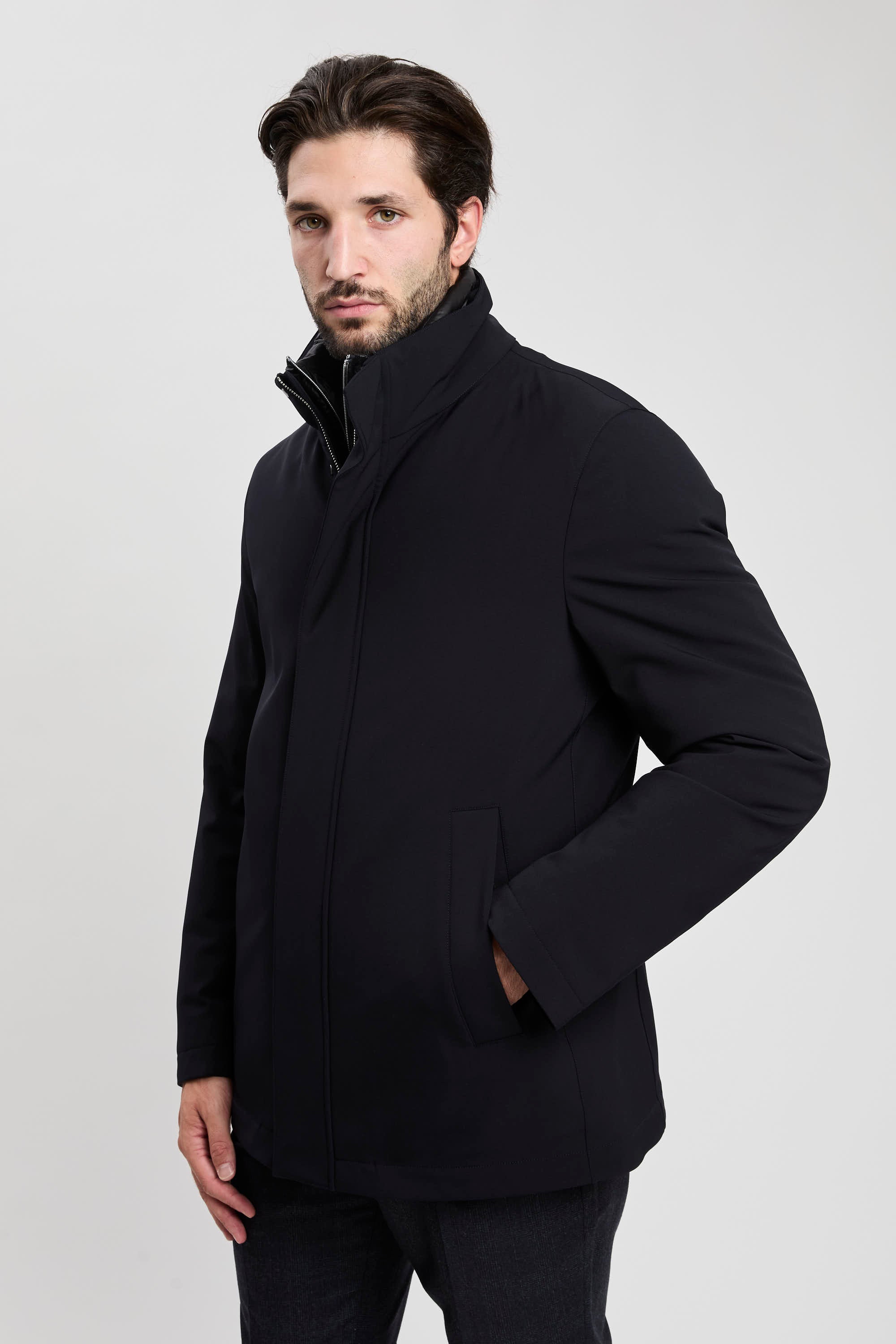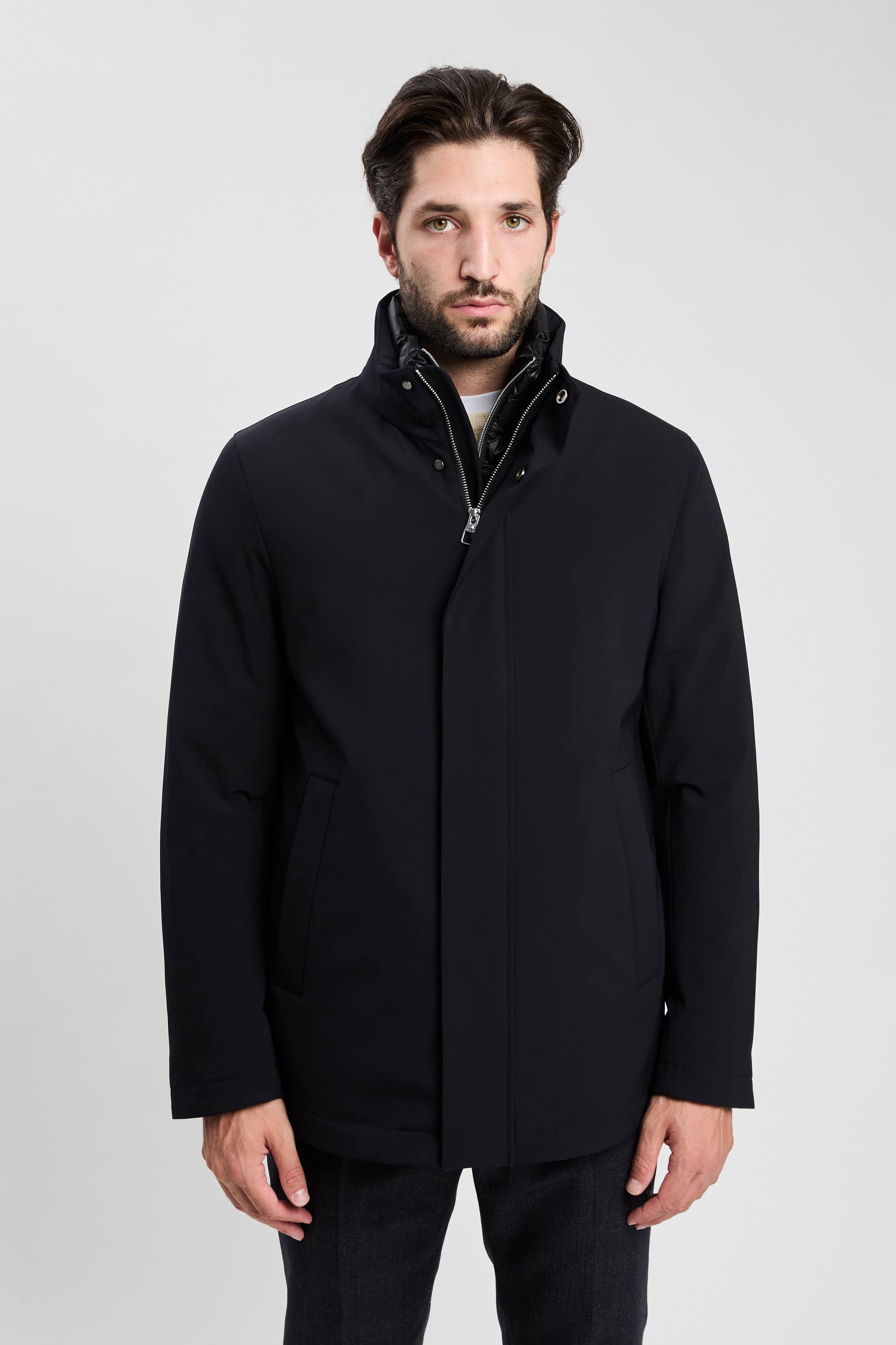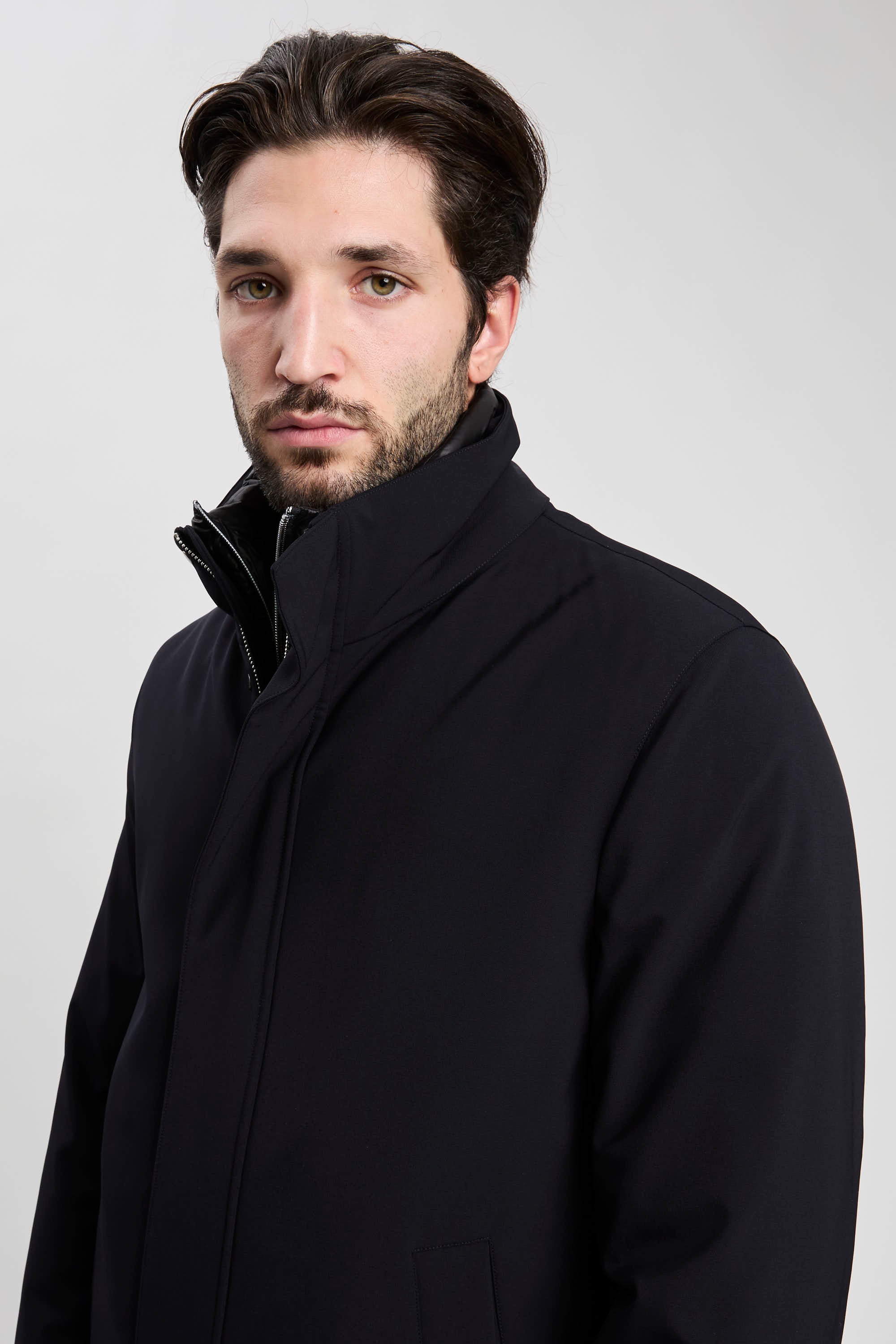 Il modello indossa la taglia 50, è alto 1.84 cm e pesa 80 kg.