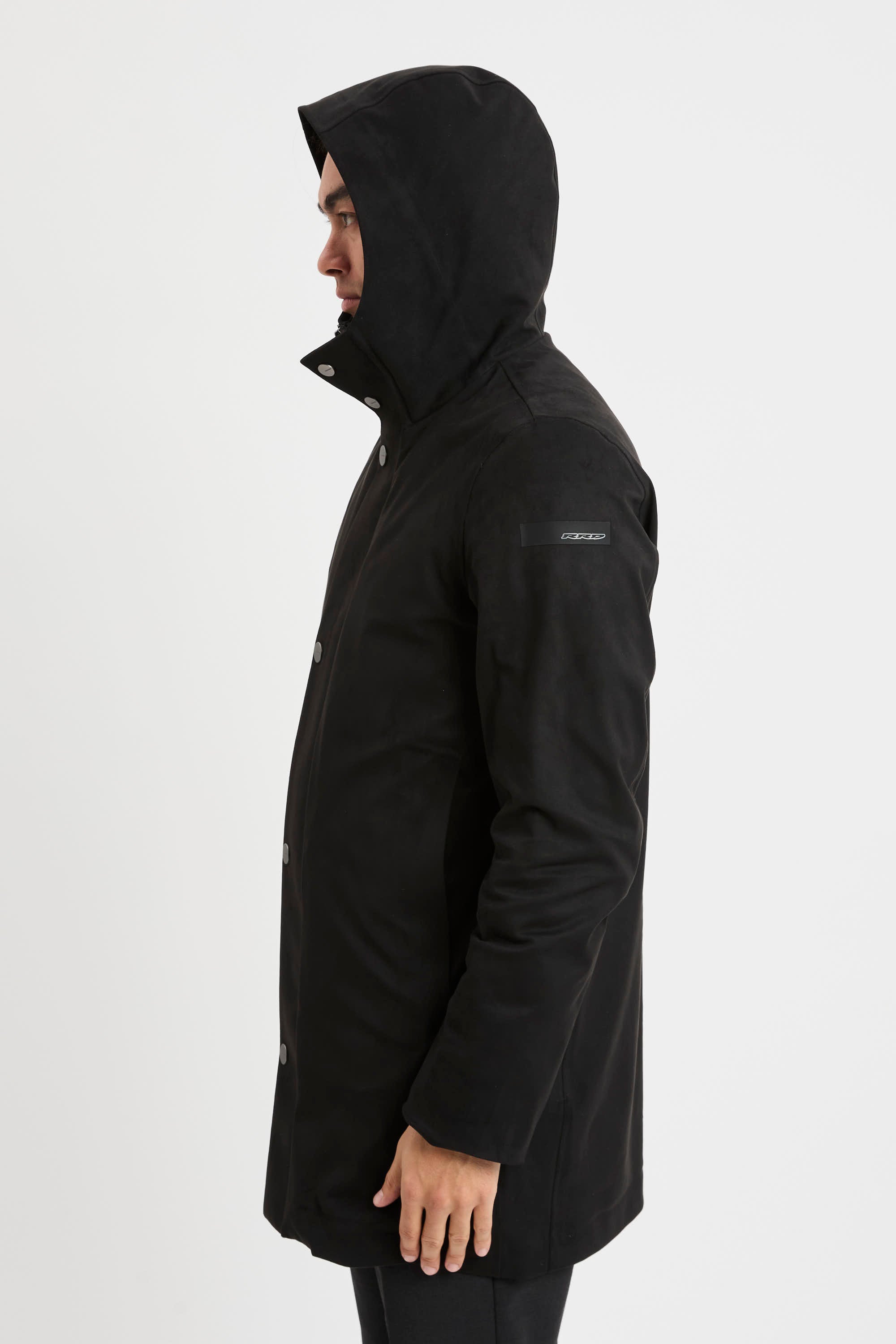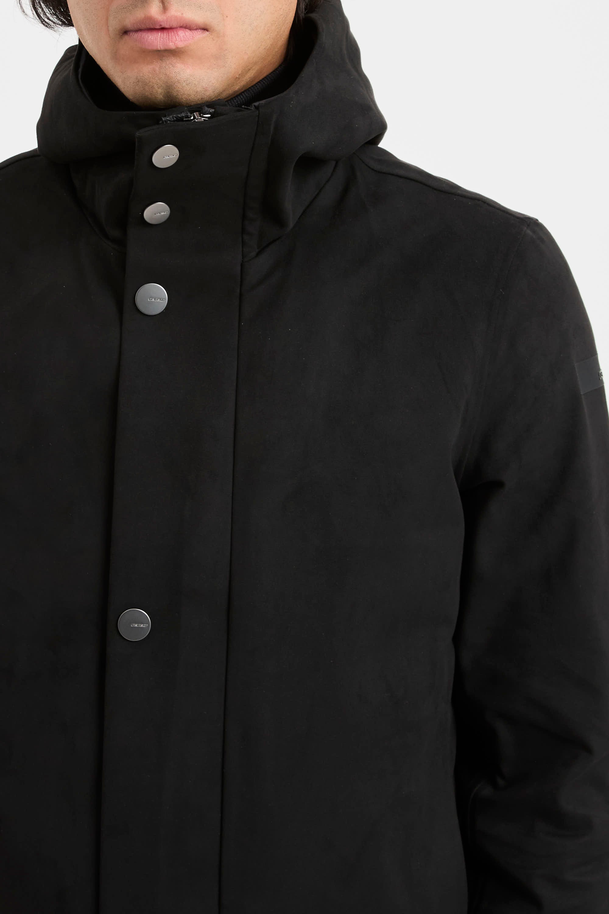 - Colletto alto protettivo con cappuccio fisso e imbottito