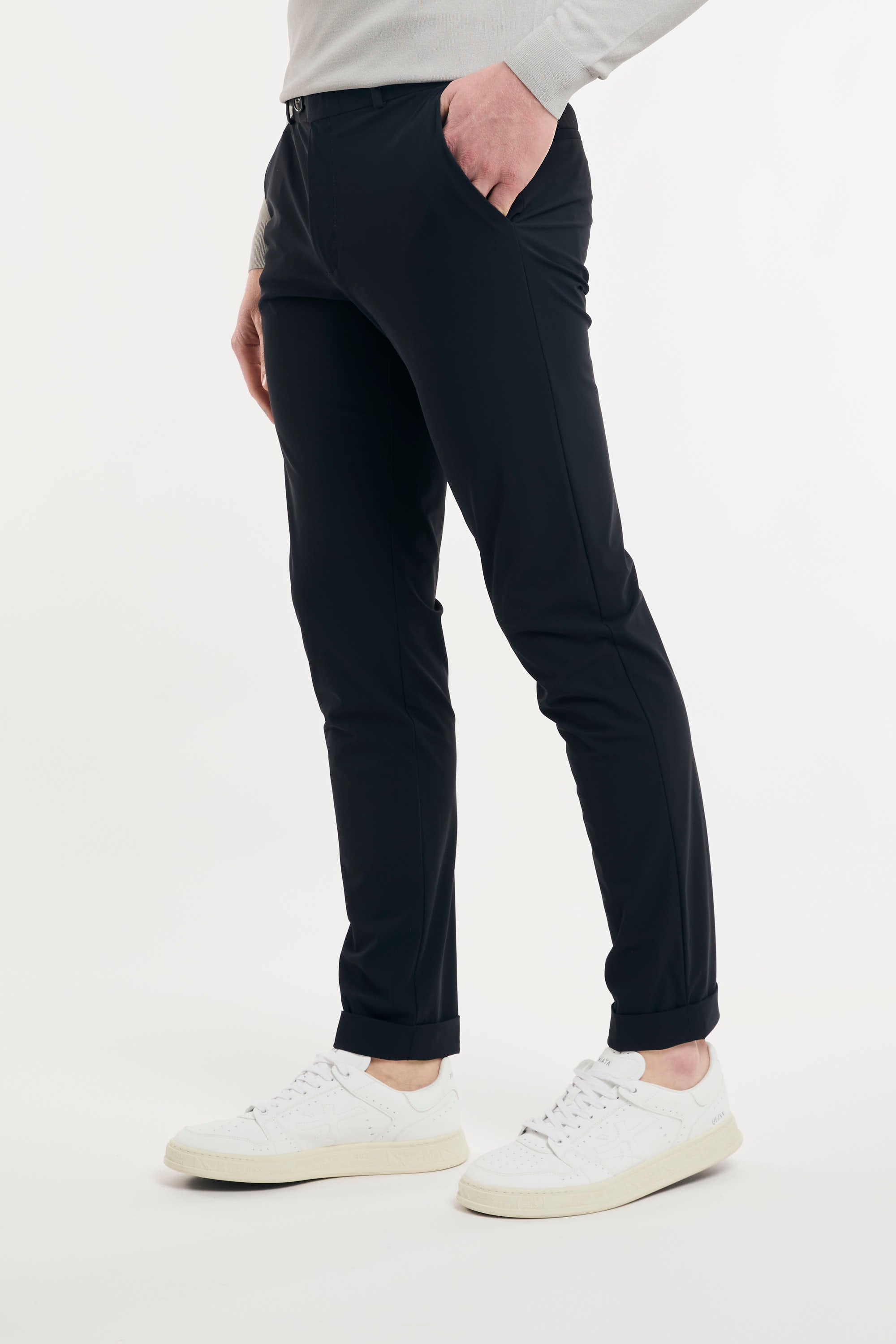 - Pantalone realizzato in tessuto stretch fresco e traspirante, leggero e dal touch liscio e morbido