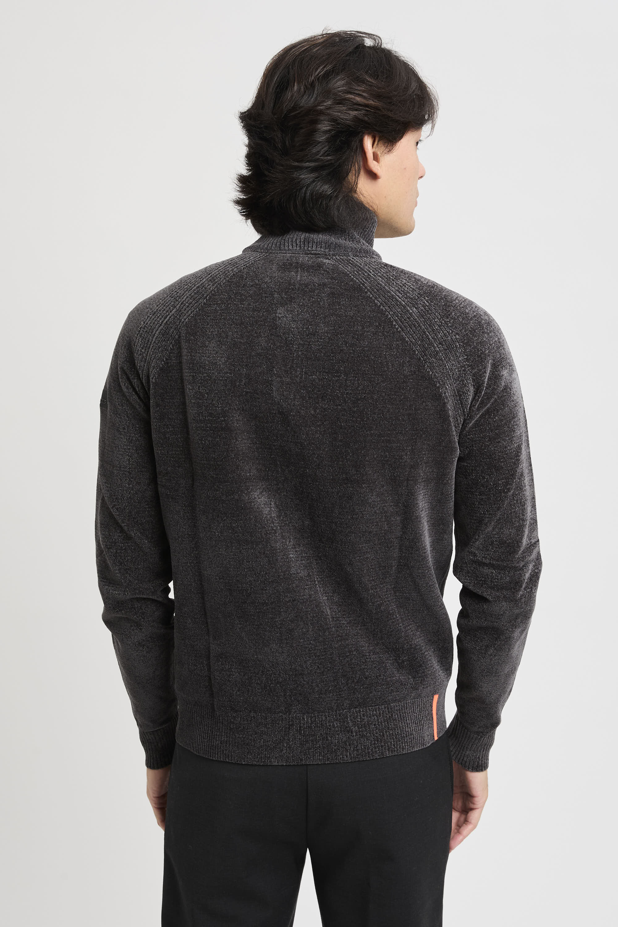 - Rifiniture a coste inglesi su collo alto, polsi e fondo