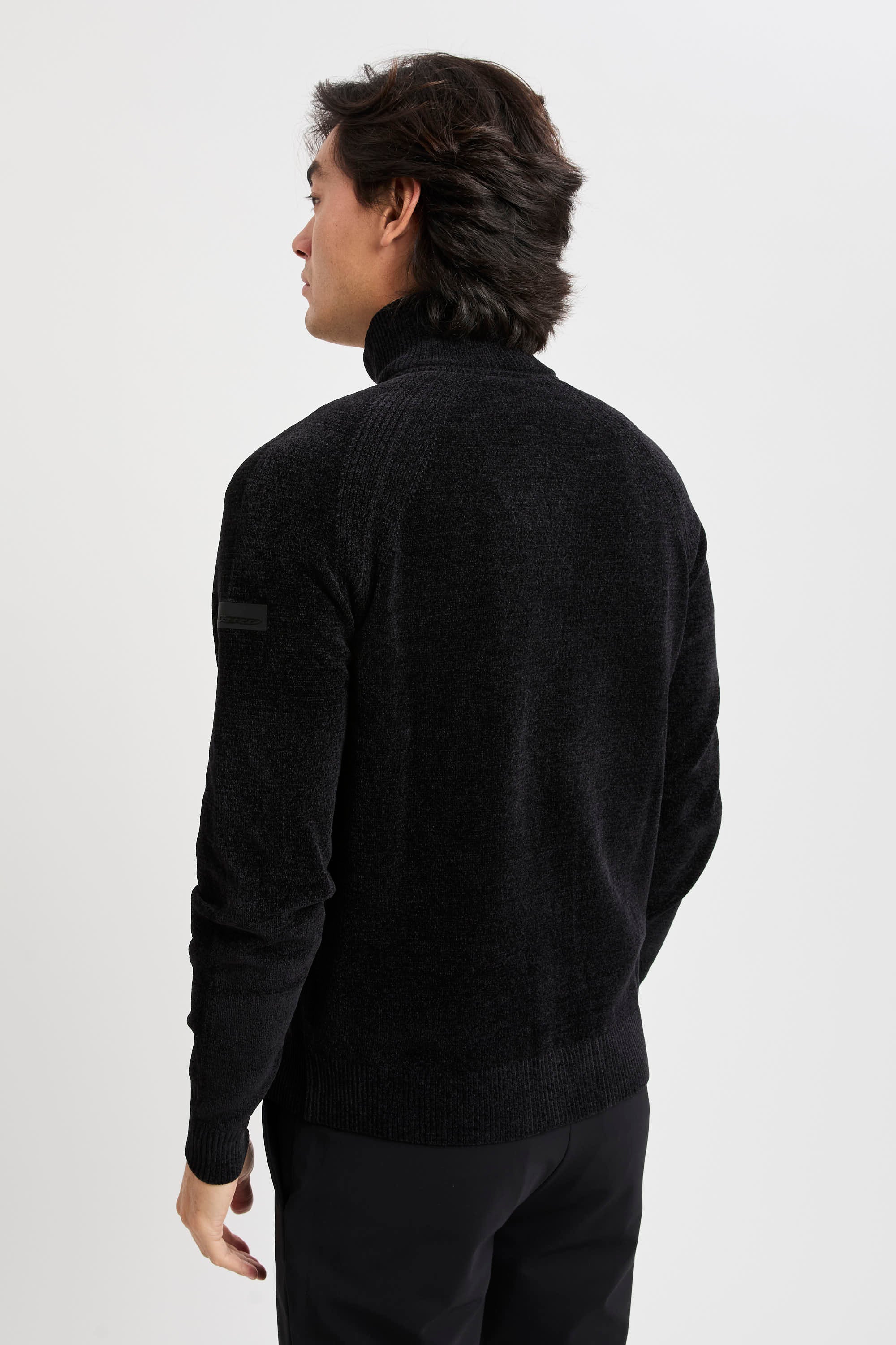 - Rifiniture a coste inglesi su collo alto, polsi e fondo