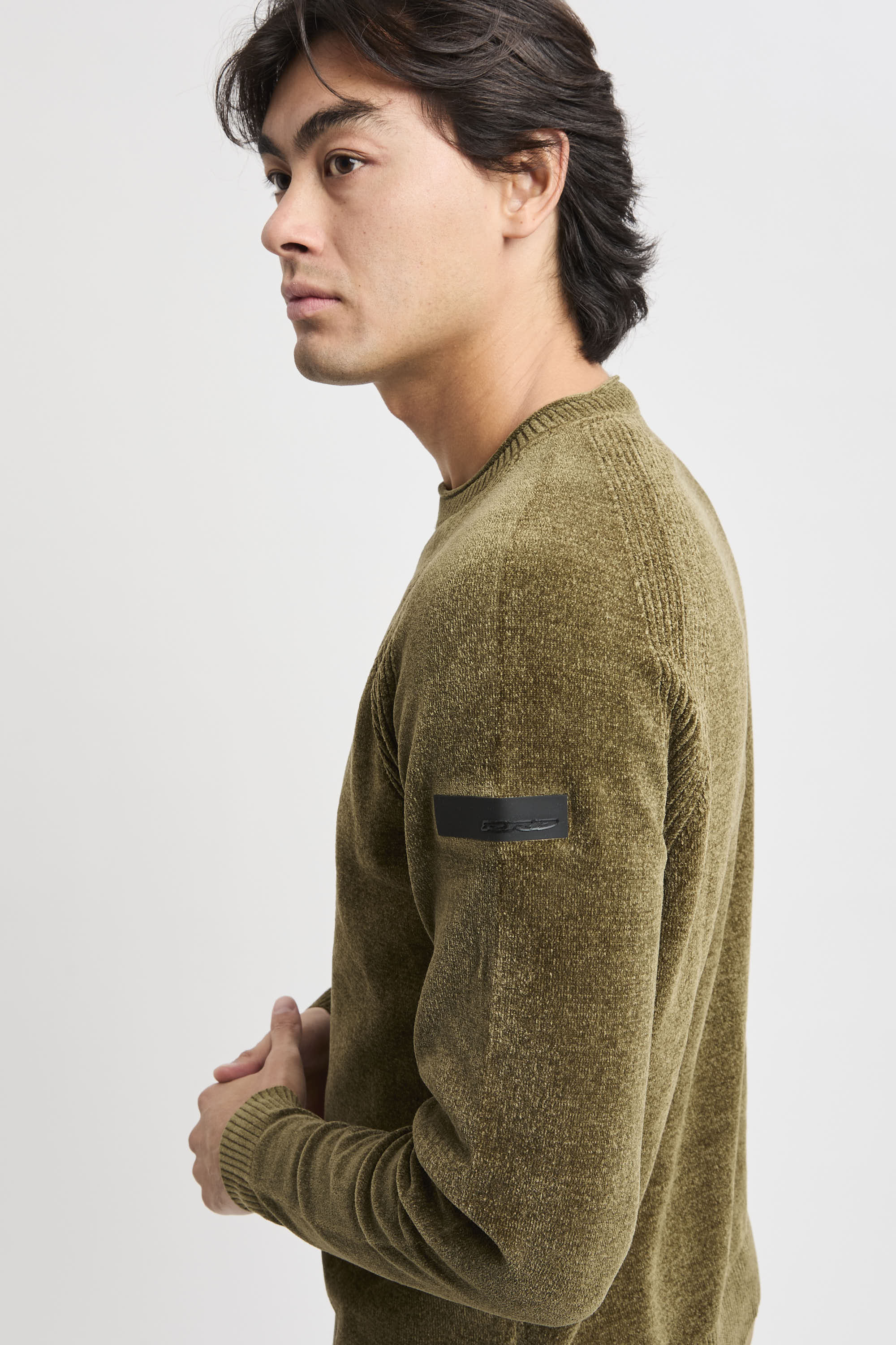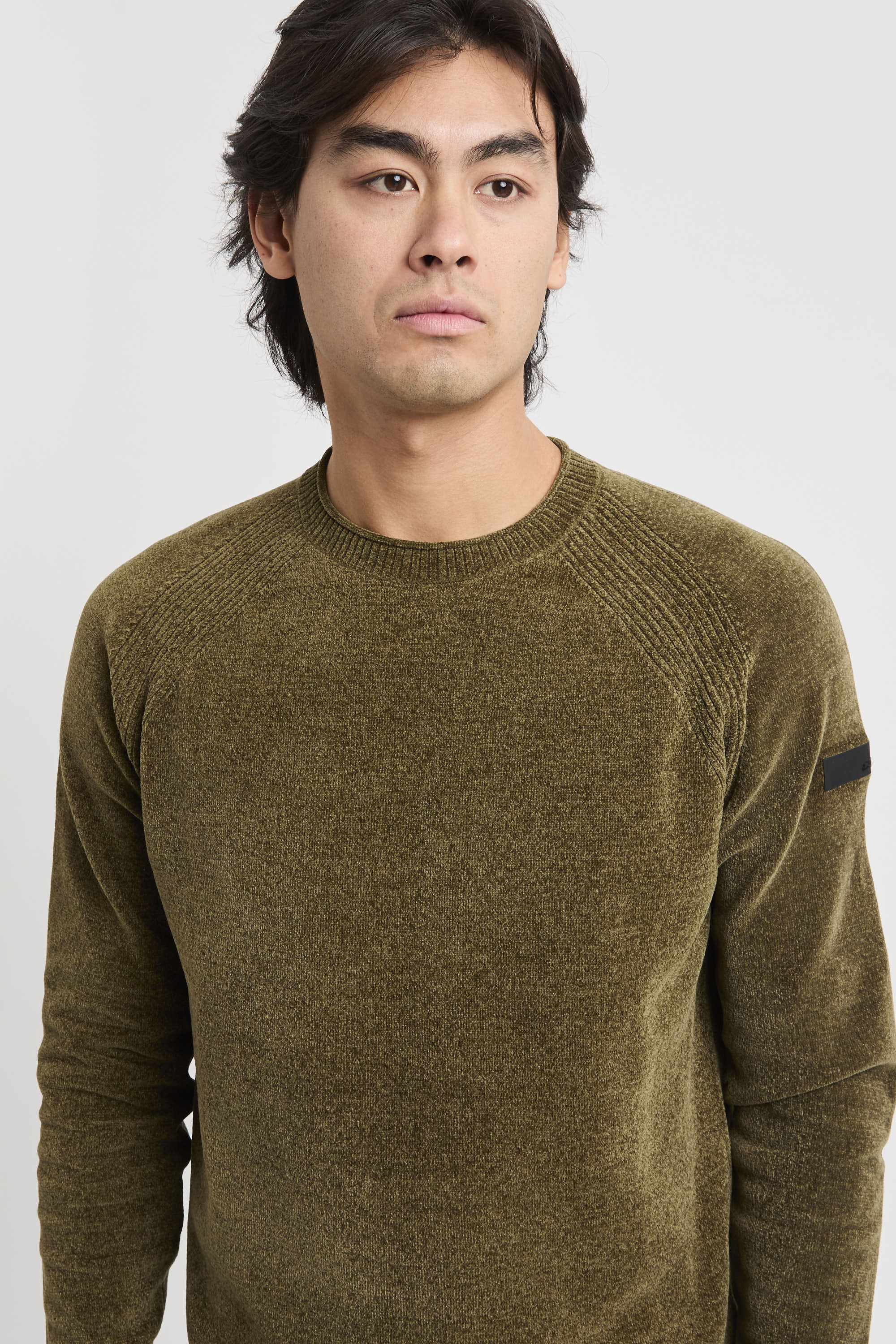 - Maglia girocollo realizzata in soffice ciniglia stretch dal touch vellutato e luminoso