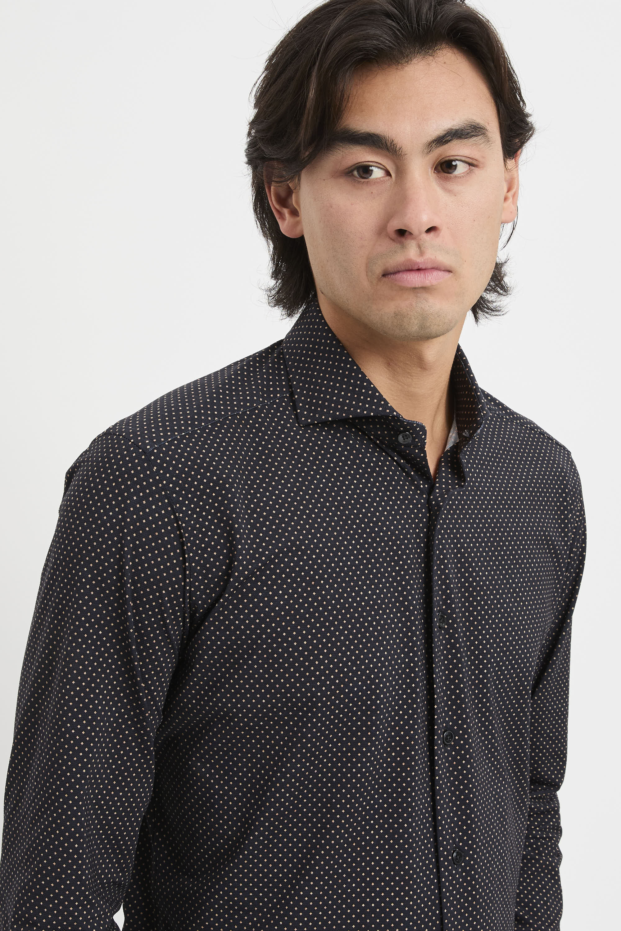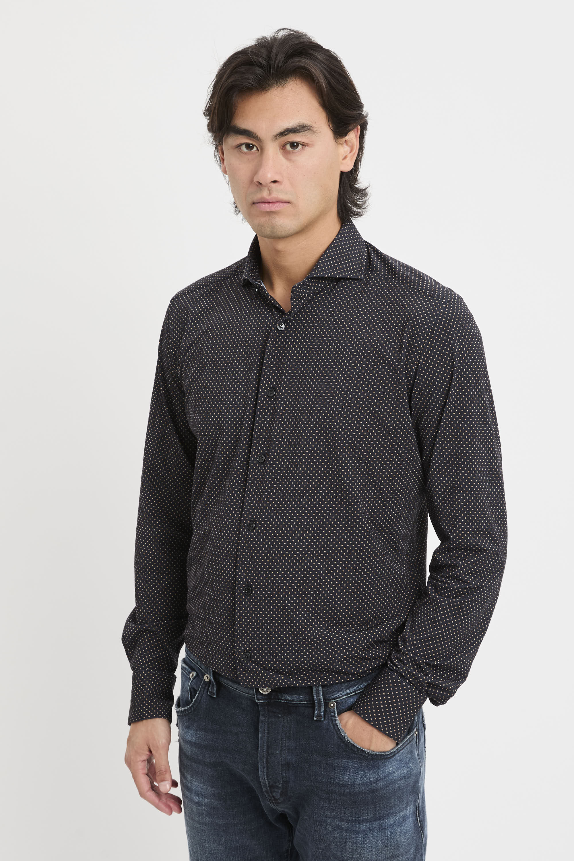 Il modello indossa la taglia 40, è alto 1.83 cm e pesa 72 kg.